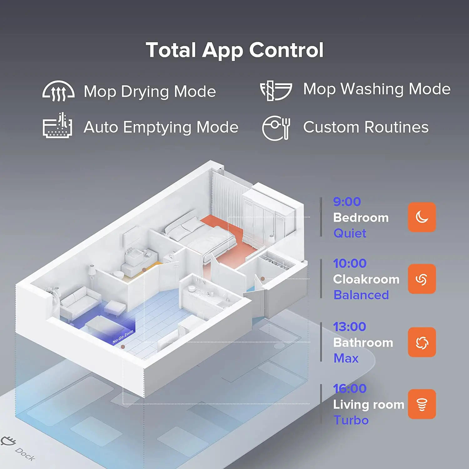 Aplicativo avançado e controle de voz.O aplicativo Roborock oferece controle total sobre o aspirador robô, incluindo modo de esvaziamento automático, modo de lavagem e secagem com esfregão, ajuste de sucção e fluxo de água, limpeza programada, adição de móveis e muito mais.O S8 Pro Ultra pode até enviar uma sugestão inteligente para definir zonas No-Go ao detectar locais fáceis de sugar durante a limpeza.O suporte para Amazon Alexa, Google Home e Siri Shortcuts permite que você comanda seu robô com o poder de sua voz também.