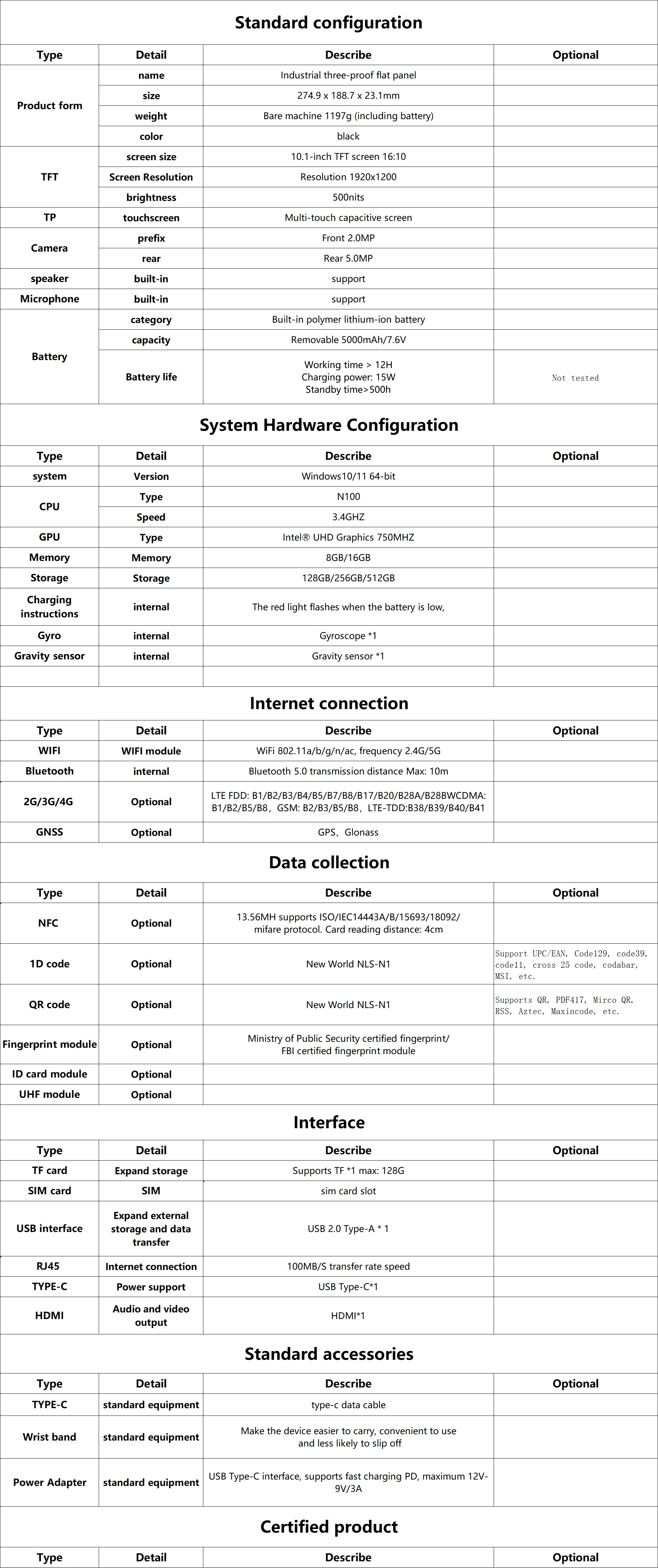 - Product Name: 10.1 Inch Windows 10/11 Pro Rugged Tablet 4G LTE GPS 8GB RAM/128 GB ROM 10000mAh IP67 Handheld Waterproof Tablet