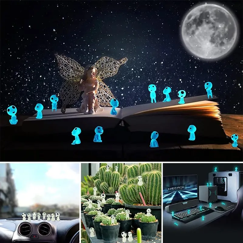 10 pçs elfos luminosos mini figuras decoração do tanque de peixes kodama brilham no escuro figuras jardim micro flor vaso paisagem ornamento