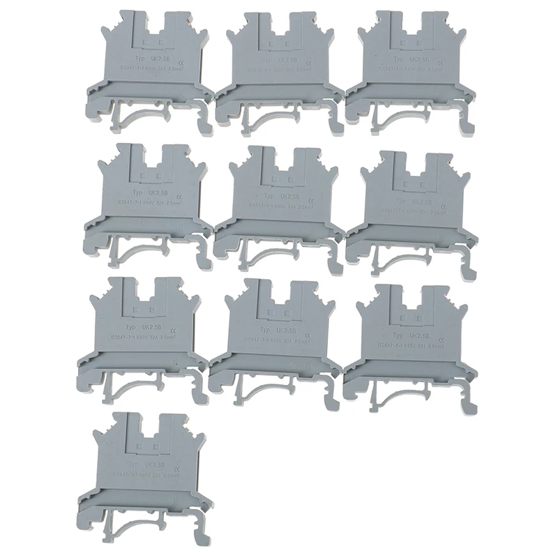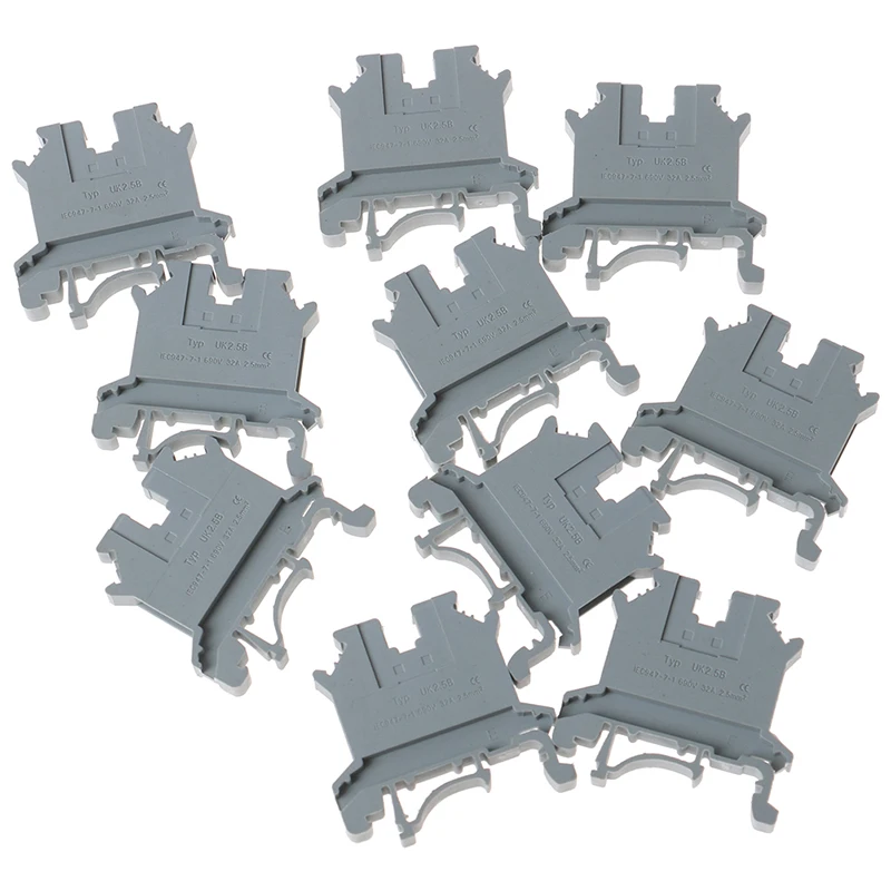 10pcs Rail Terminal Block Universal Panel Mount UK 2.5B 32A Screw Connection