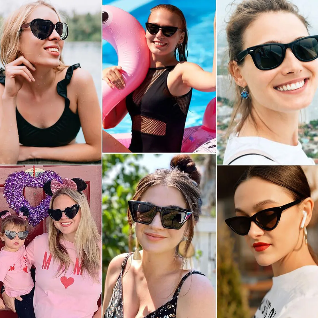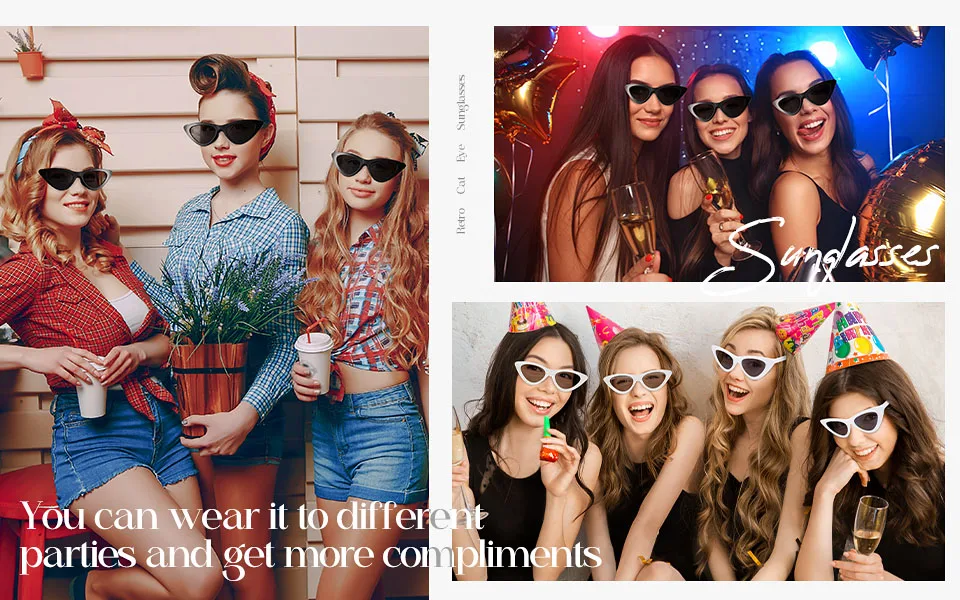 Este pacote inclui 10 óculos de sol da série preta diferente, cateyes, coração, quadrado, redondo, oval, estilos e quantidades suficientes para atender às suas necessidades diárias.