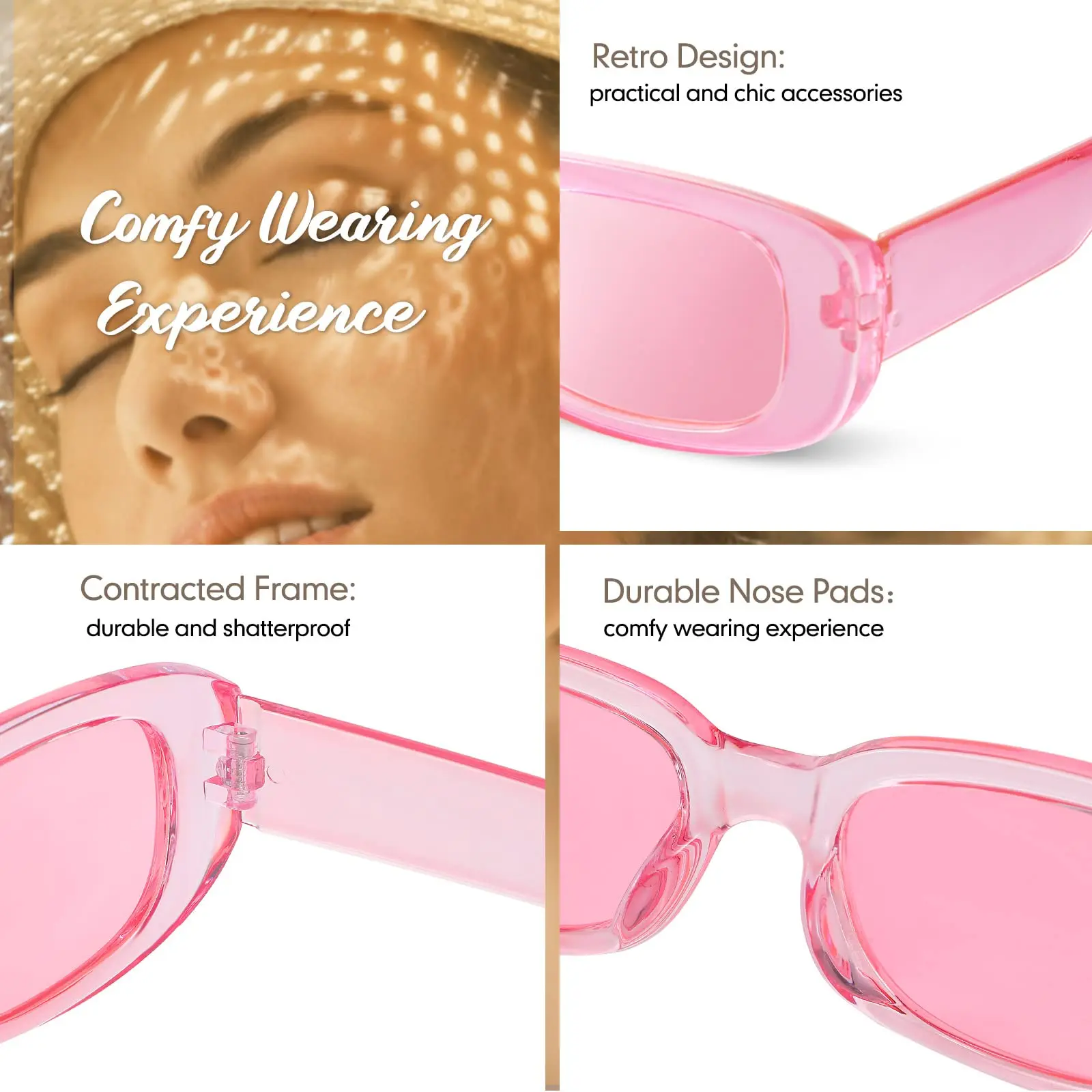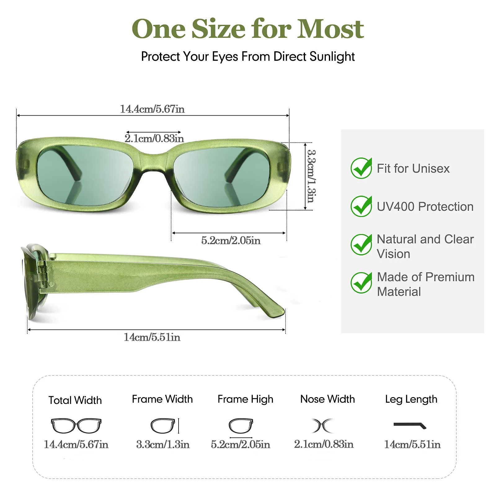 Esses óculos de sol retangulares com lentes UV400 podem bloquear a radiação UVA e UVB, proporcionando uma visão natural e clara.