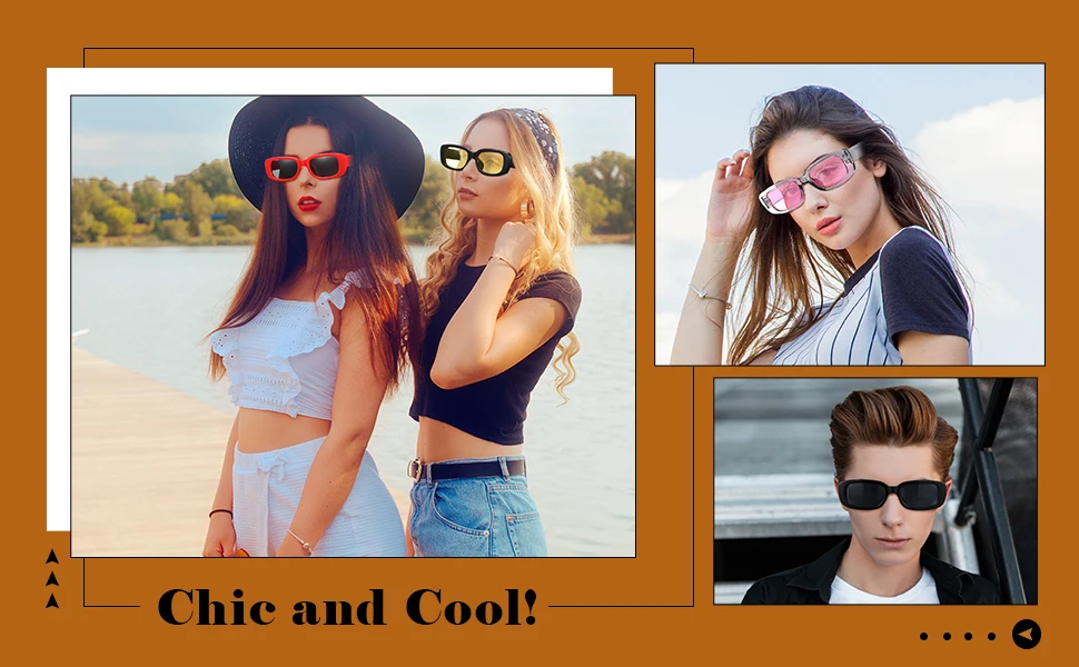 Nossos óculos de sol são projetados com armações retangulares pequenas e requintadas dos anos 90 para lhe trazer um senso infinito de alta moda.