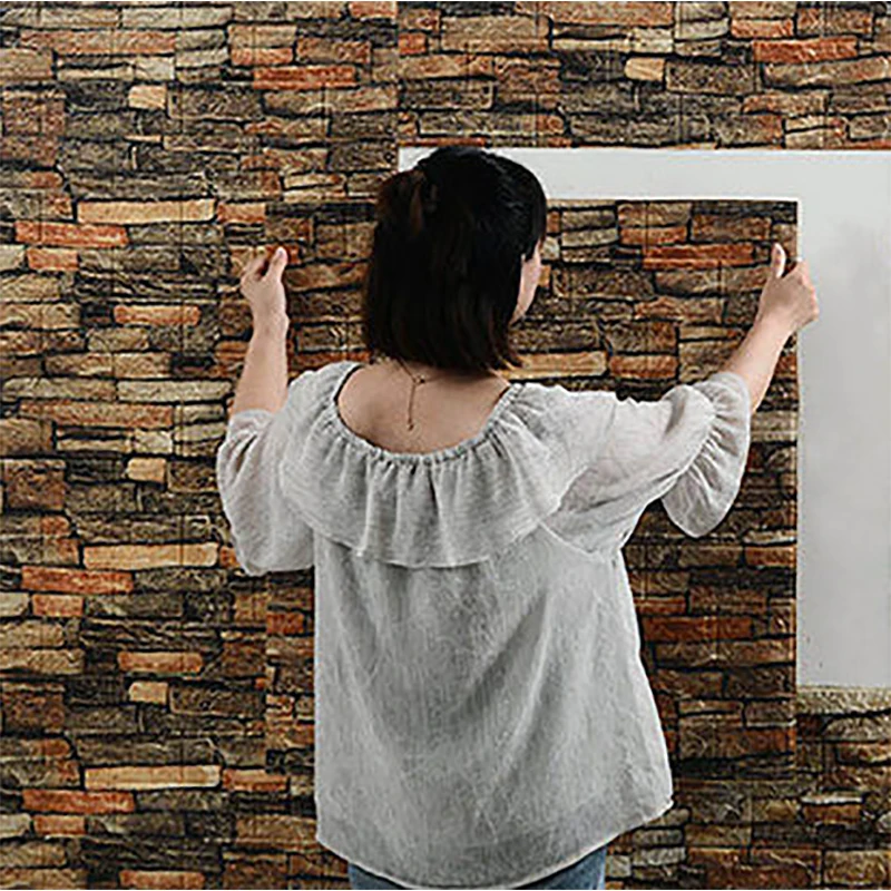 Seguro para sua família: O material do papel de parede de espuma de tijolo 3D é seguro, sem detecção de metais pesados nocivos, painéis de decoração de parede ambiental de alta qualidade.