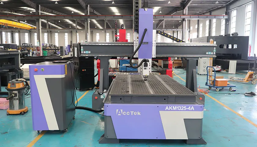 O roteador CNC AKM1325-4A do Grupo AccTek é uma máquina CNC versátil e de alta precisão, projetada para corte, gravação e usinagem 3D complexa de 4 eixos em marcenaria, produção de móveis, sinalização e aplicações industriais.
