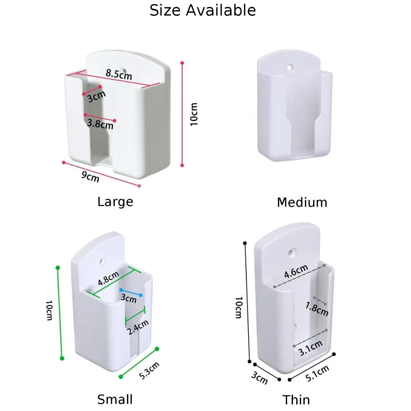 Características: * Brand new & Alta qualidade * Simples e generoso; pode ser pendurado na parede para economizar espaço. * Posição estável, desgaste pequeno. Especificação: * Cor: Branco * Material: ABS * Tamanho: exterior (Comprimento) X (Largura) X (Lado) 10x6,5x4cm (aproximado) Interno (comprimento) X (largura) X (lado) 10x6x3cm (aproximado) Pacote inclui Suporte montado parede do controle 1 ×Remote Nota: 1 、 Por favor, permita 0,5-1 polegada erro devido à medição manual. 2 、 Como diferentes computadores exibem cores de maneira diferente, a cor do item real pode variar ligeiramente das imagens acima, obrigado pela sua compreensão.