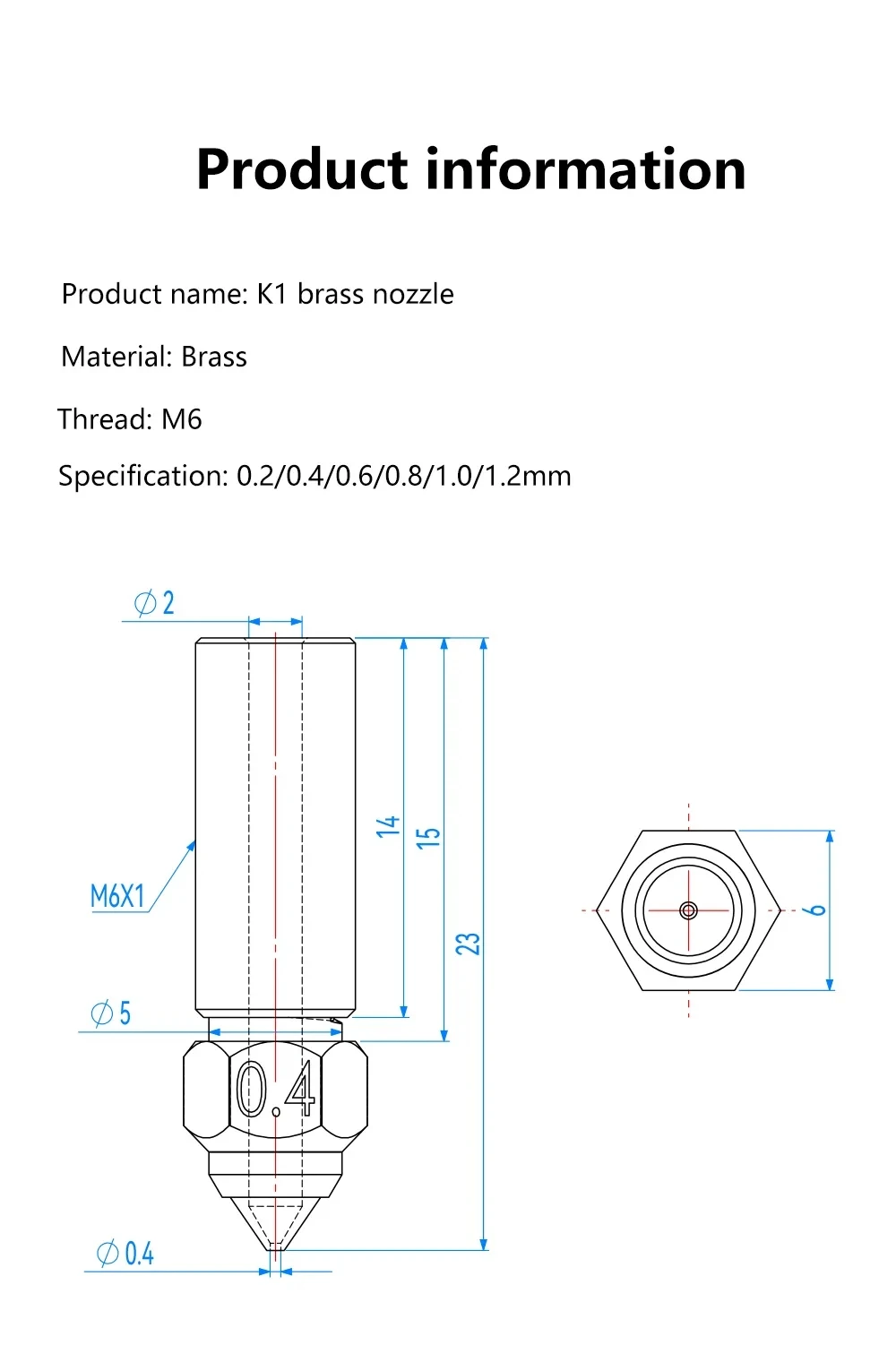 2023 creality k1 bocal de bronze 6 peças/kit m6 0.2/0.4/0.6/0.8/1.0/1.2mm para peças de impressora 3d k1 fdm filamento antiaderente