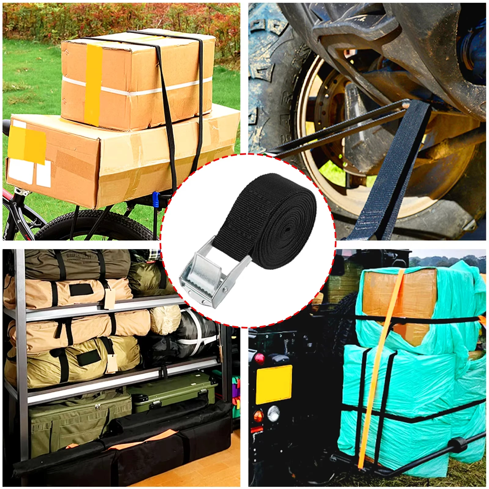 3.8cm x 1m/2m/3m/4m/5m fivela preta amarrar cinto correias de carga para carro motocicleta bicicleta fivela de metal corda de reboque forte cinto catraca