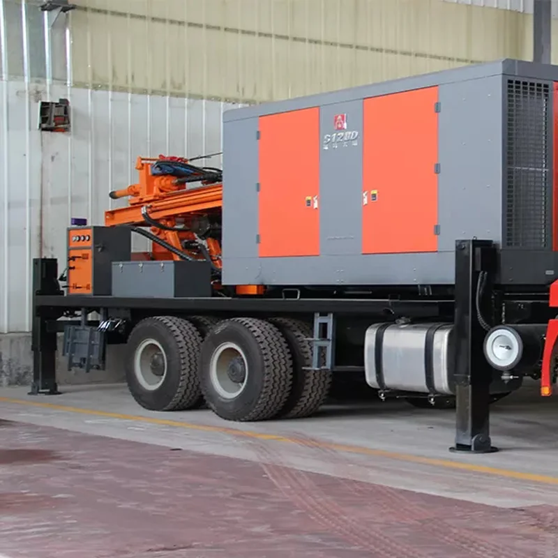 This water well rig is a light, efficient and versatile drilling and drilling equipment powered by a diesel engine. It is mainly used for drilling wells, agricultural irrigation wells and other wells, especially for mountainous and rock formations,water intake project. This series of rigs adopts new hydraulic technology, which is equipped with high-torque hydraulic motor rotation and large-bore hydraulic cylinder advancement. Use with air compressor, can drill 180M, 200M, 300M, 400M, 500M ,600M, 800M, etc.