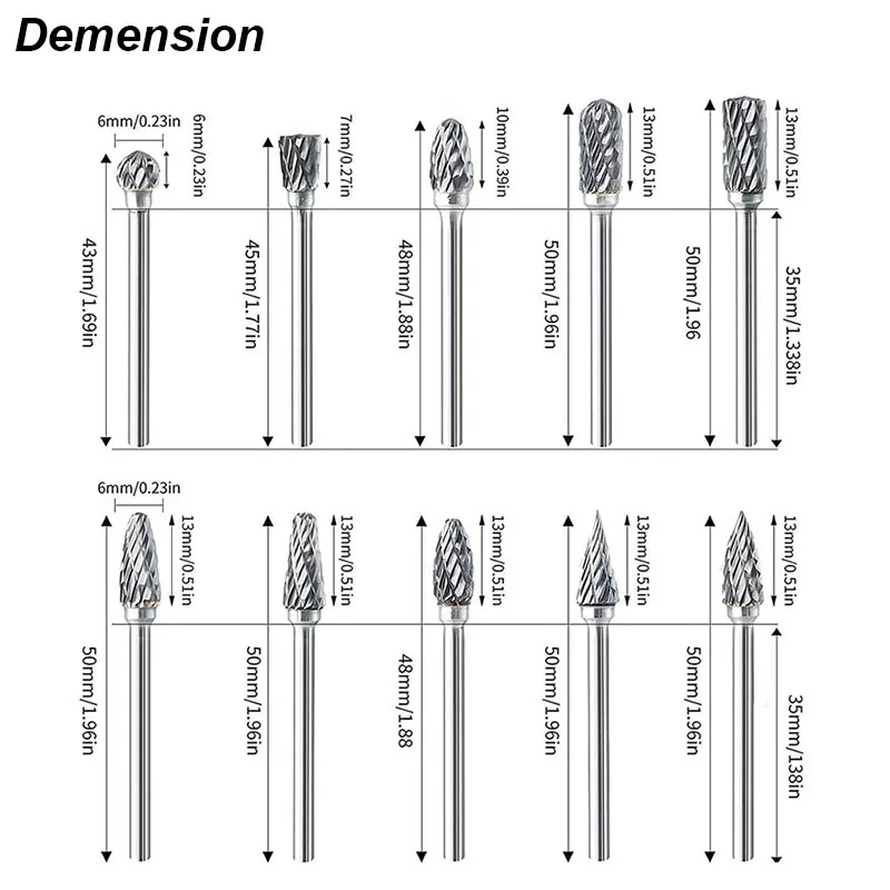 3mm Shank Drawing Tungsten Carbide Milling Cutter Rotary Tool Burr Double Diamond Cut Rotary Dremel Metal Wood Electric Grinding