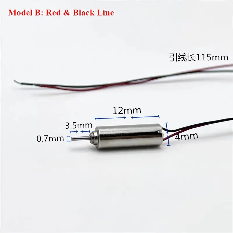 Dicas: Temos três modelos de motor, o modelo A é motor de linha vermelha e verde, o modelo B é motor de linha vermelha e preta; o modelo C é DC 3,7V 60000rpm com linha vermelha e preta.Os compradores selecionam o modelo adequado que você precisa.Obrigado.