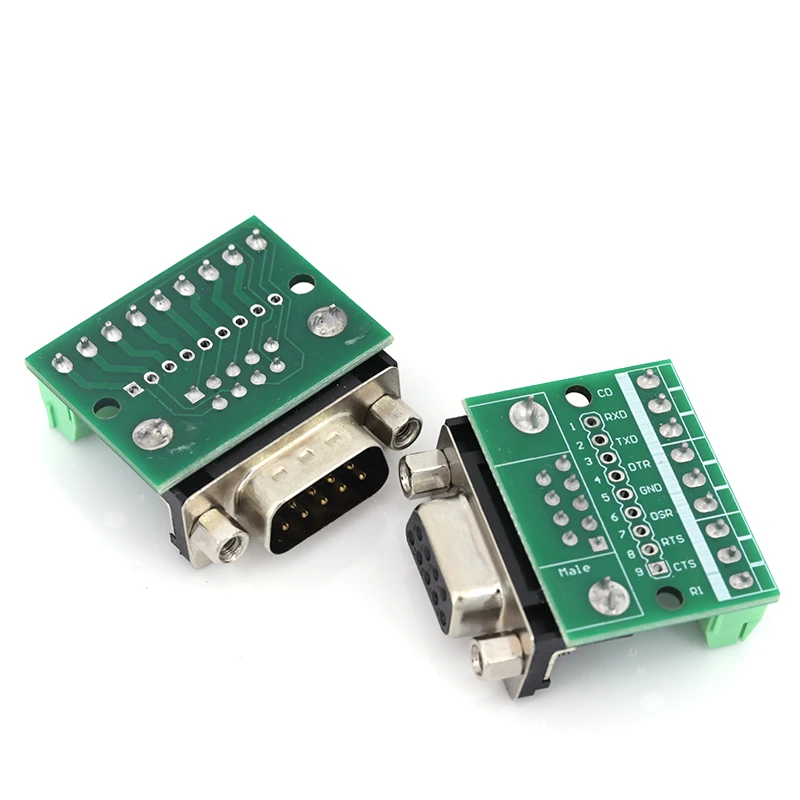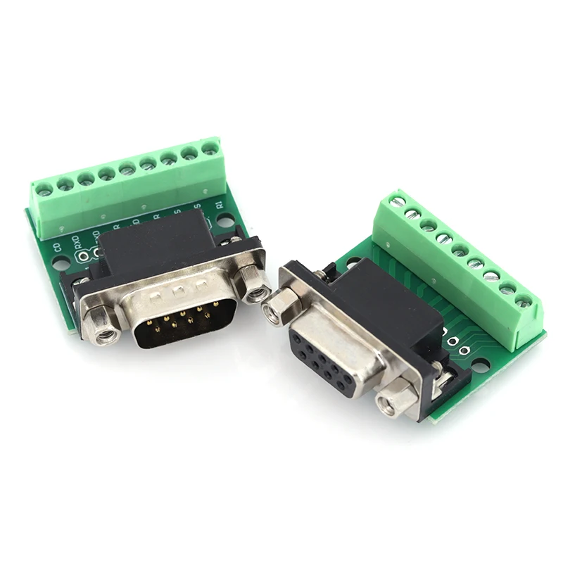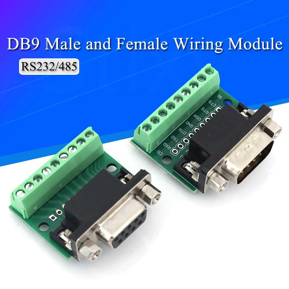 Adaptador db9 macho fêmea, módulo terminal de sinais rs232 rs485 serial para terminal, conector de 9 pinos e 9 furos