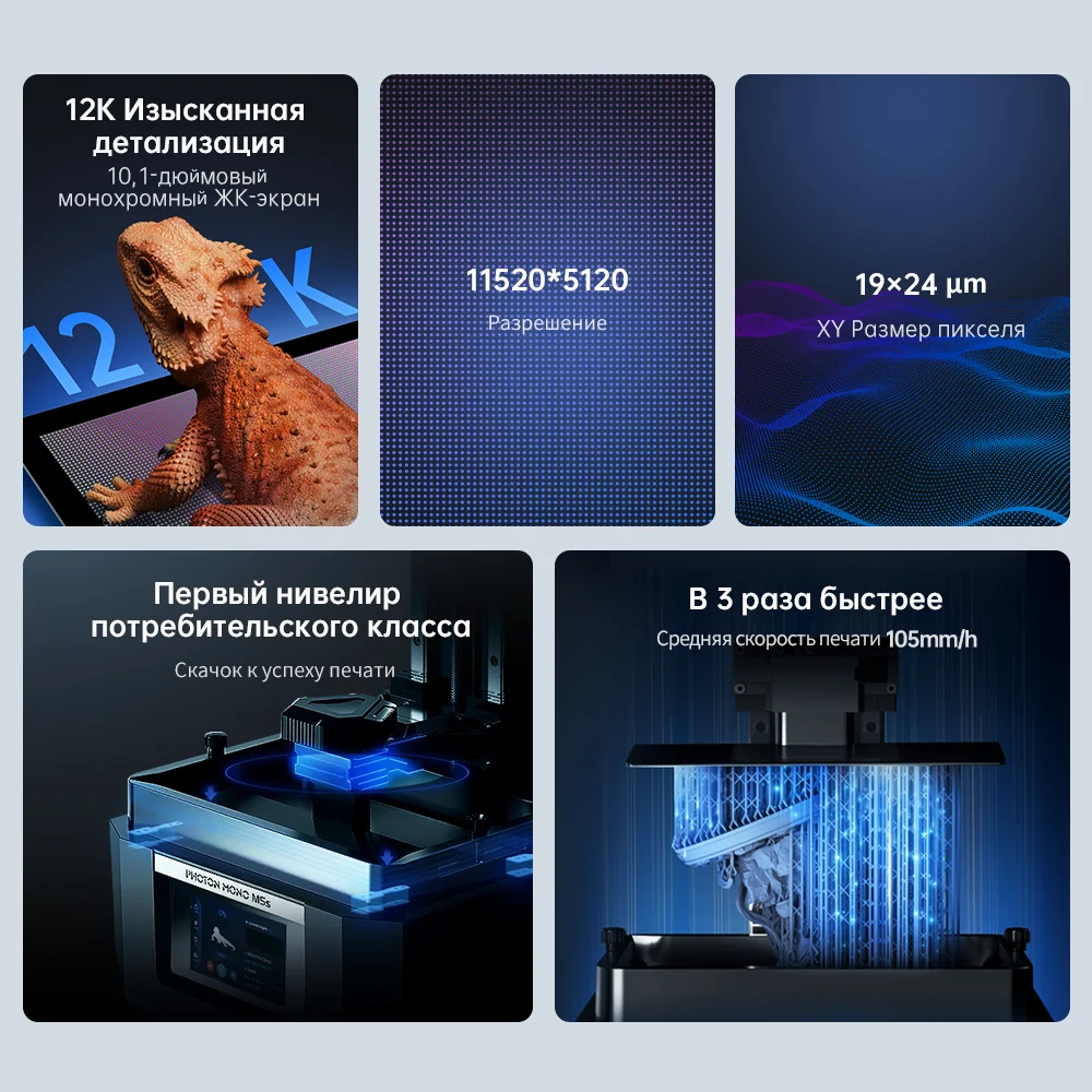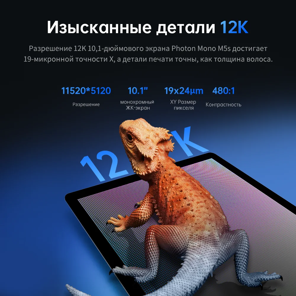 O Photon Mono M5s tem a resolução 12K da sua tela de 10,1 polegadas, alcançando uma precisão de 19 mícrons X, com detalhes de impressão tão precisos quanto a espessura do cabelo.