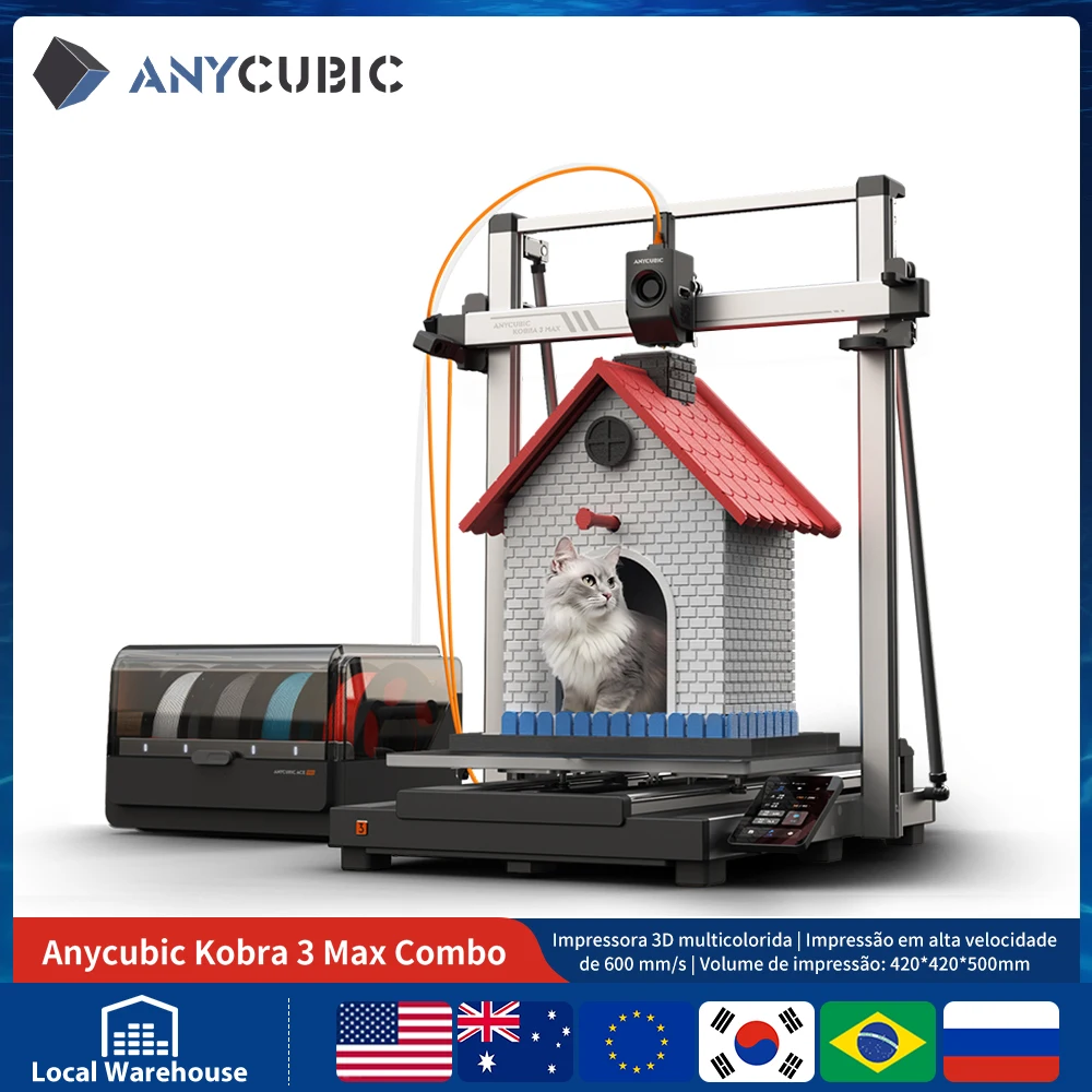 Anycúbico kobra 3 max combo impressora 3d fdm até 600 mm/s velocidade máxima de impressão volume de construção enorme 500*420*420mm controle de aplicativo inteligente