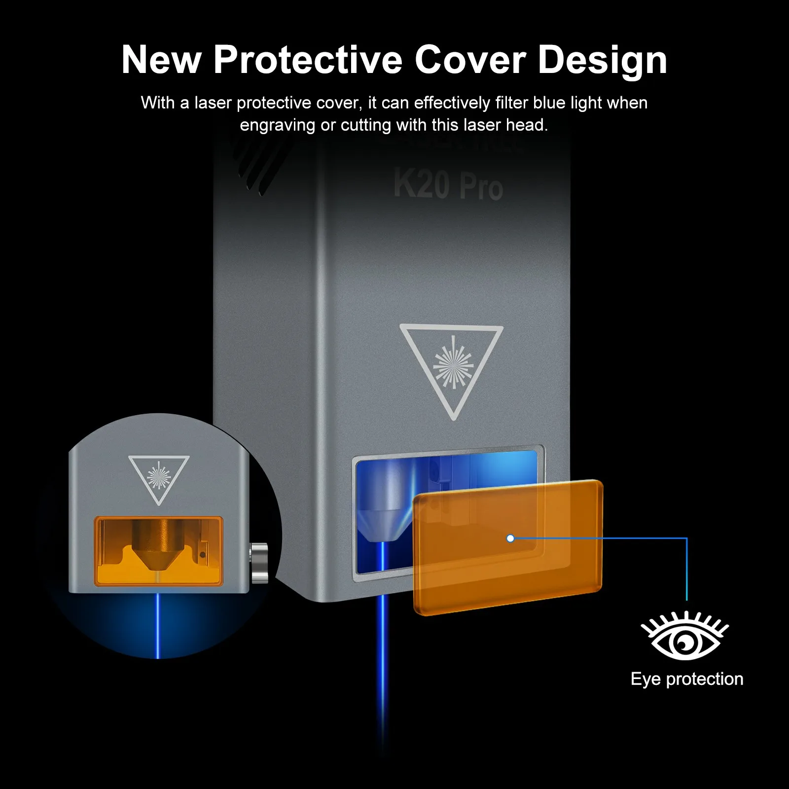 LASER TREE K20-Pro 20W Cabeça de laser de potência óptica para gravador CNC Ferramentas de laser DIY 450nm TTL/PWM Módulo de laser de luz azul