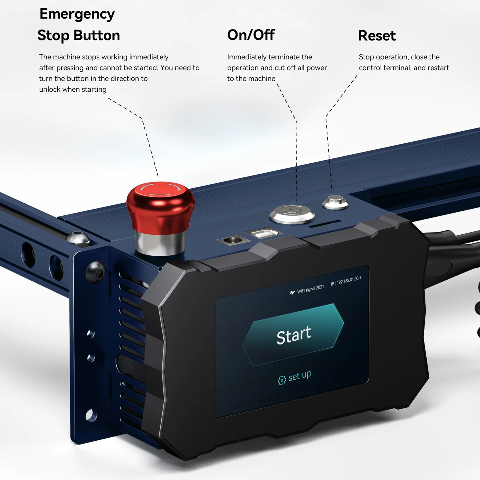 Onze. Botão de parada de emergência: Se houver um acidente, pare a máquina a qualquer momento e a escultura é mais segura.