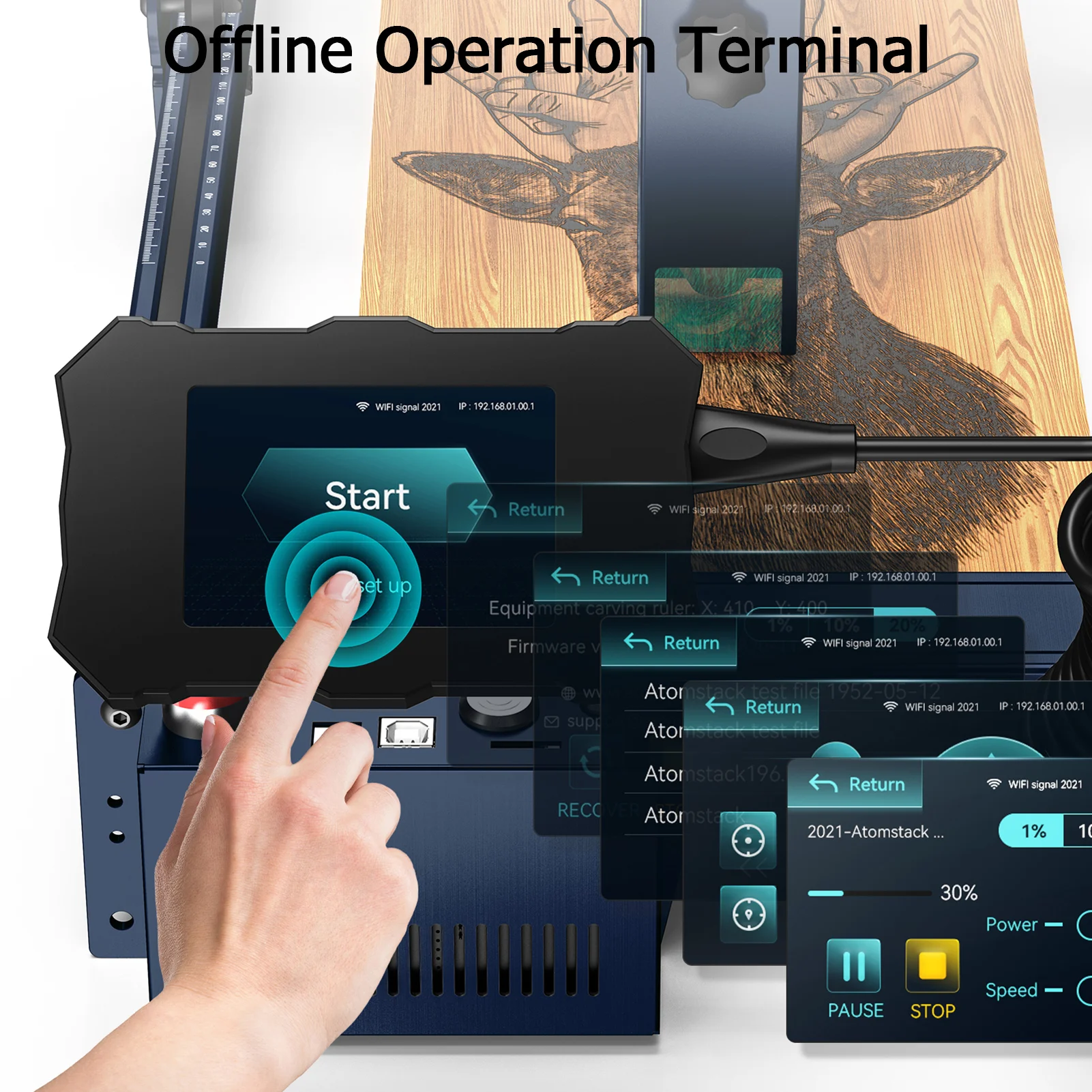 9. Apoie a gravura autônoma: o A10 PRO é equipado com um painel de controle terminal e apoia a gravura autônoma. Você pode realizar operações de gravação a qualquer hora e em qualquer lugar sem ser restringido pelo computador.