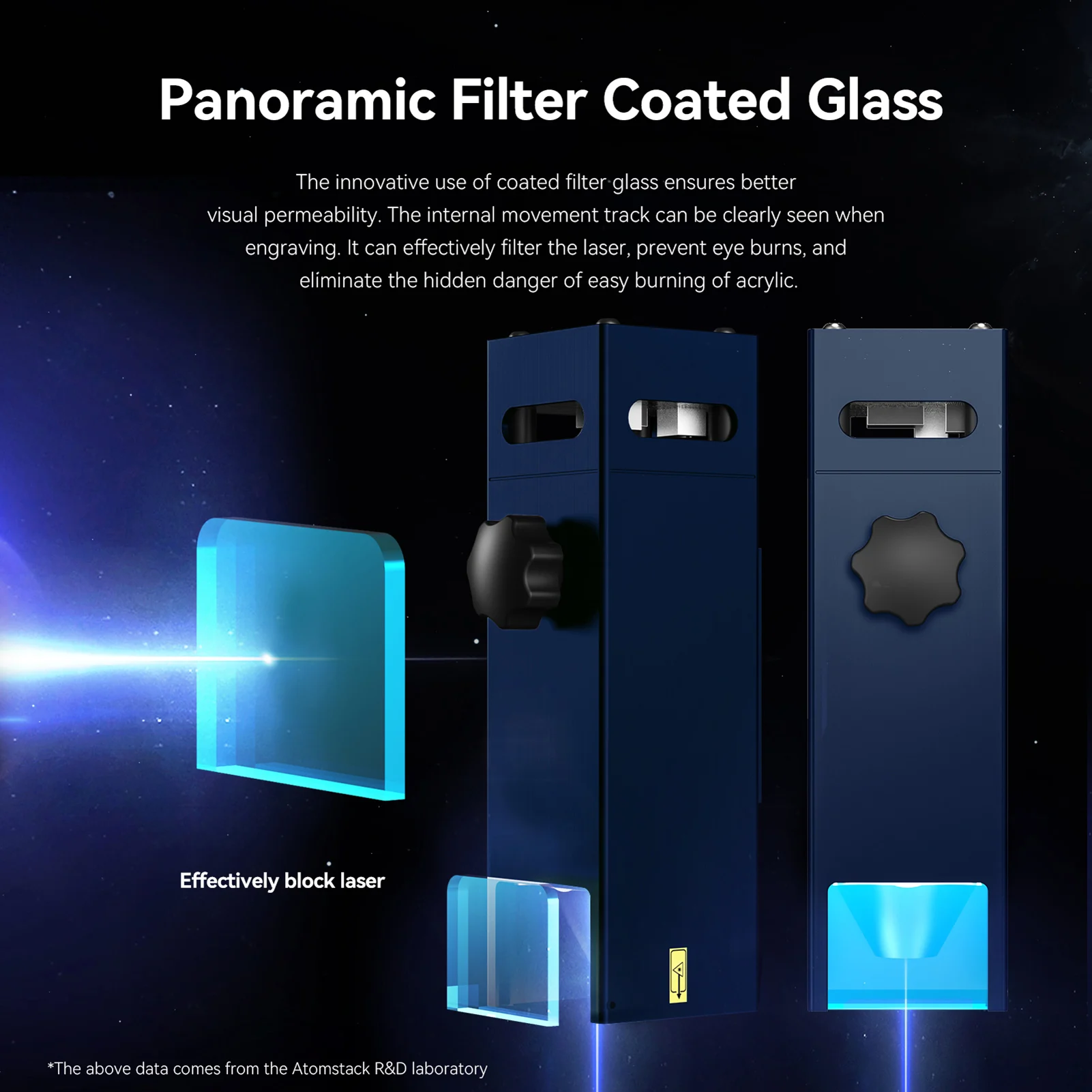 1. Novo design de proteção ocular de vidro panorâmico: A tampa protetora de vidro panorâmico do filtro é muito boa para seus olhos, filtrando 97% da luz UV, você e as pessoas ao seu redor podem assistir à gravação a laser sem usar óculos. Reduza a despesa com óculos e a inconveniência de usar óculos.