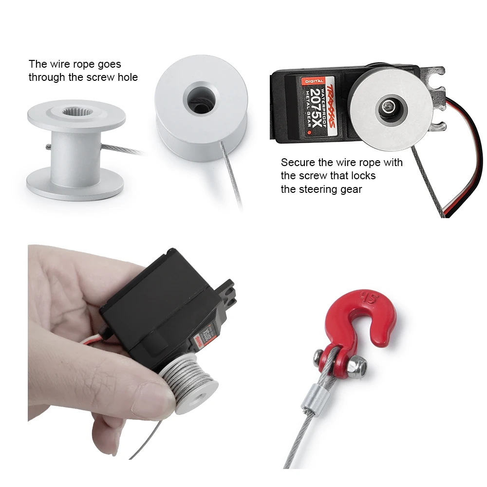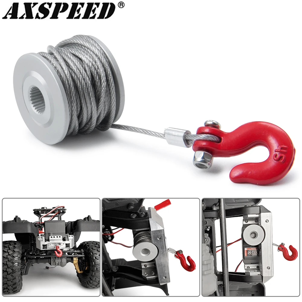 AXSPEED 25T Engrenagem de direção Servo guincho roda fios tambor gancho reboque para 1/10 TRX4 Axial SCX10 90046 Peças de carro rastreador D90 D110 RC