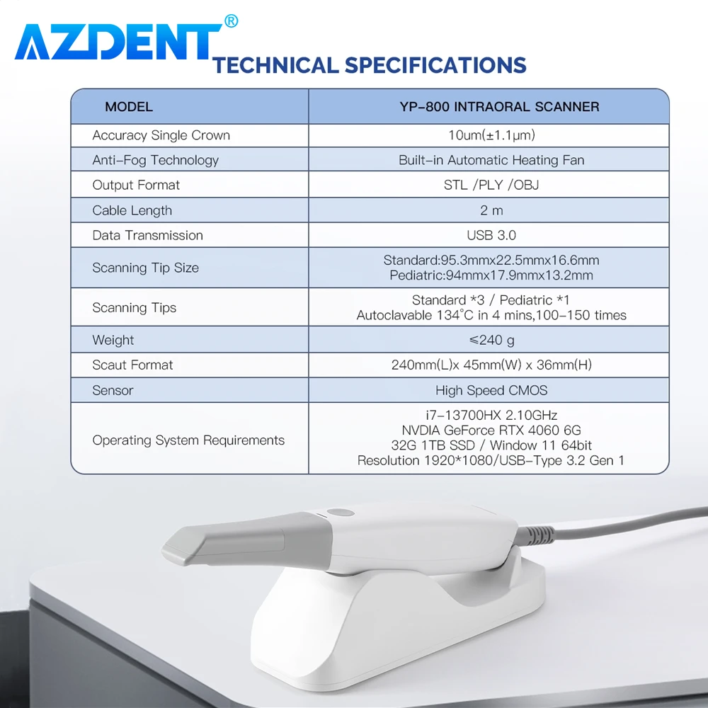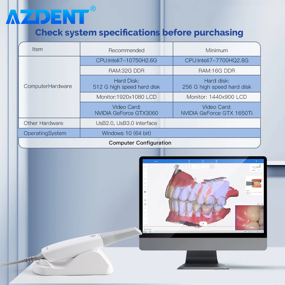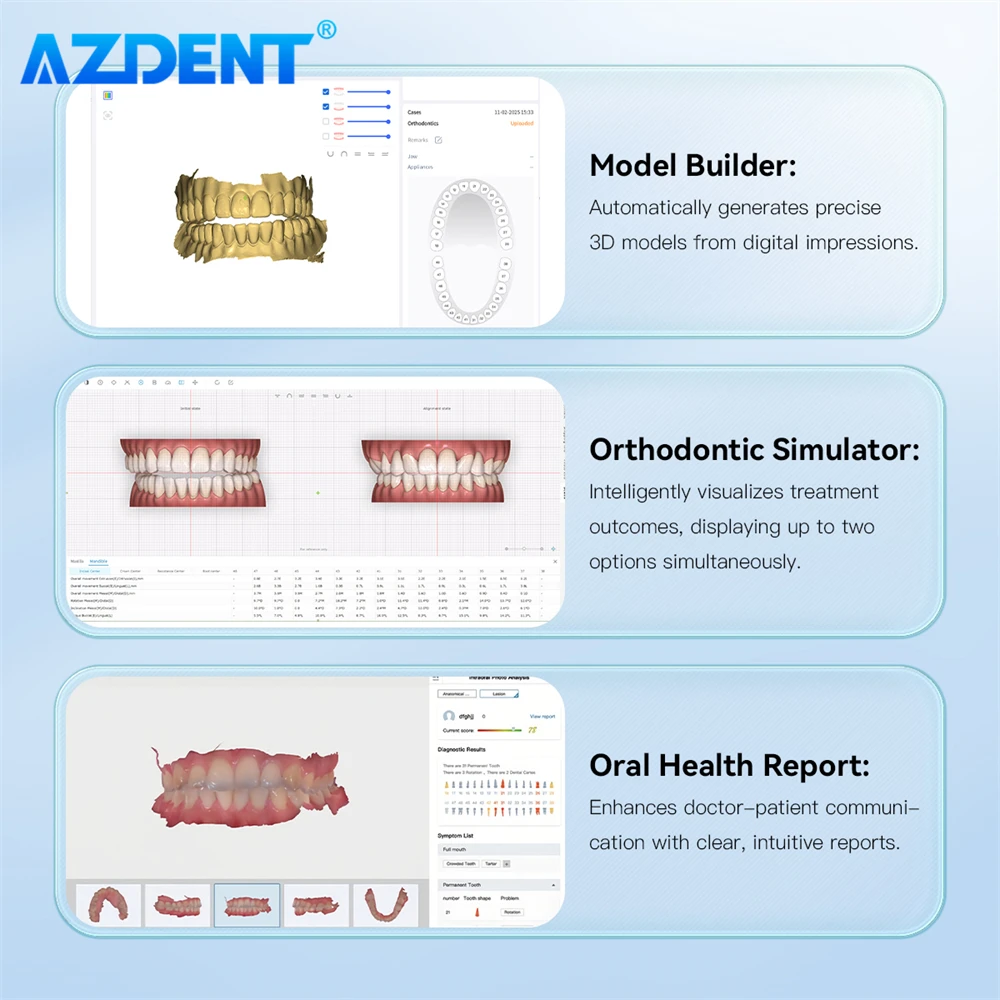 Azdent scanner intraoral dental 3d scanner impressão digital versão oral CAD CMD imagem ortodôntica digital de alta precisão