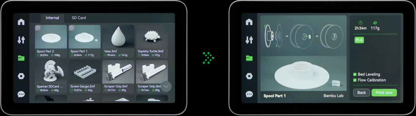 All printing parameters are embedded in RFID, which can be read through our AMS (Automatic Material System). Load and print! No more tedious setting steps.
