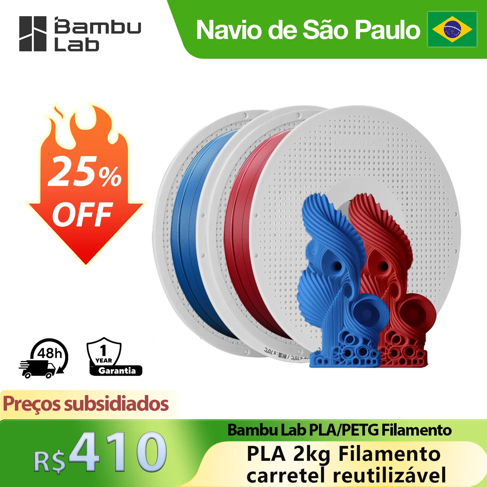 Cinzento, azul e vermelho podem ser as versões de recarga. Adequado para todos os carretos Bambu Lab.