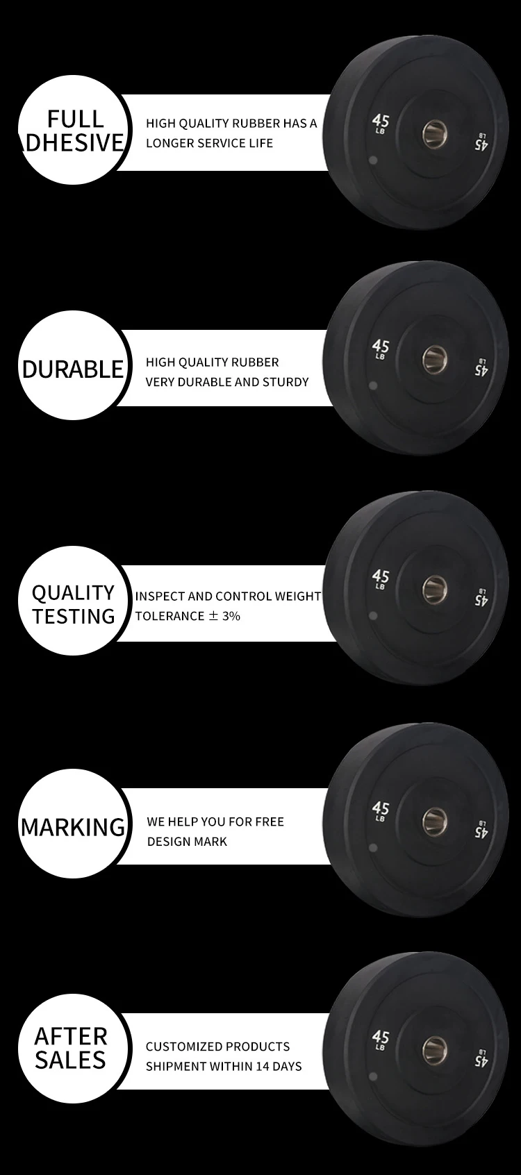 - Weight: 5kg/10kg/15kg/20kg/25kg/10LB/15LB/25LB/35LB/45LB/55LB