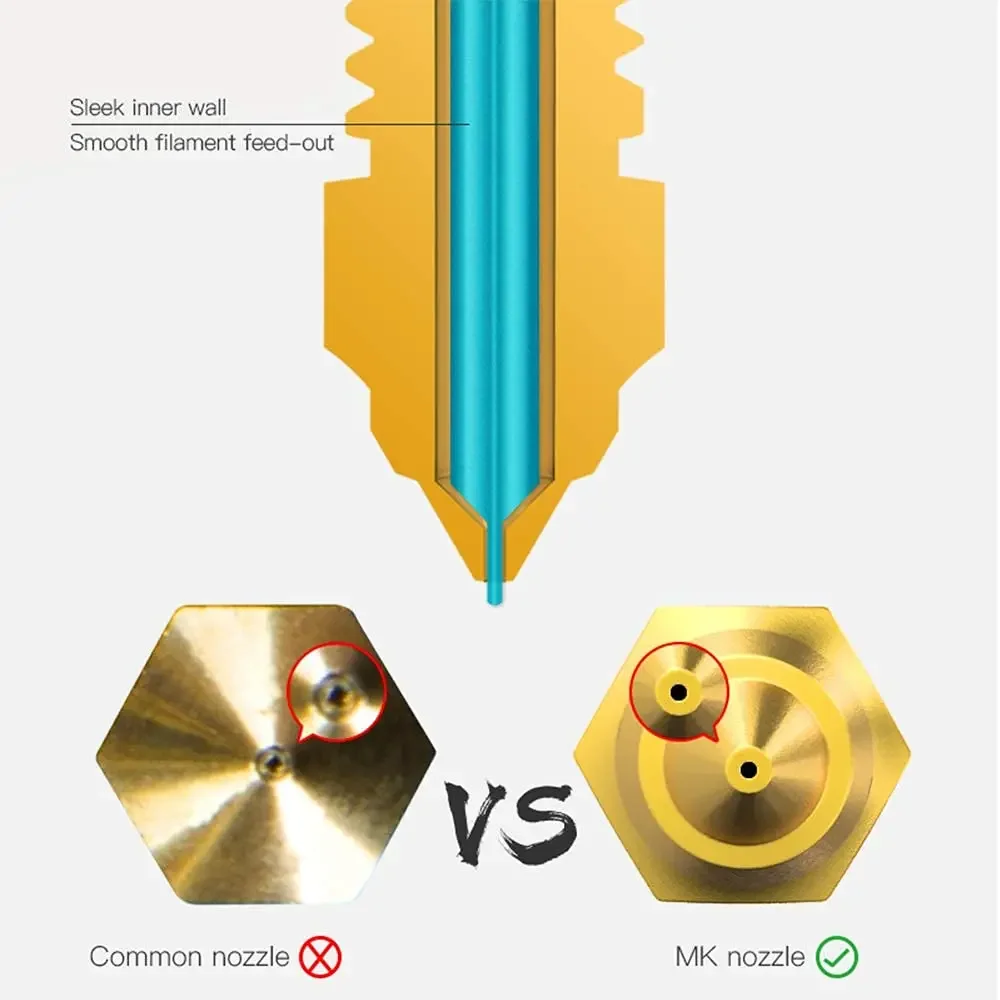 【Design Preciso】Cada lado do bico da impressora 3D é cortado por uma faca de diamante, então sua superfície de contato é mais plana. O bocal extrusor pode efetivamente impedir que a cabeça de impressão vaze e produzir um efeito de impressão suave, brilhante e consistente.