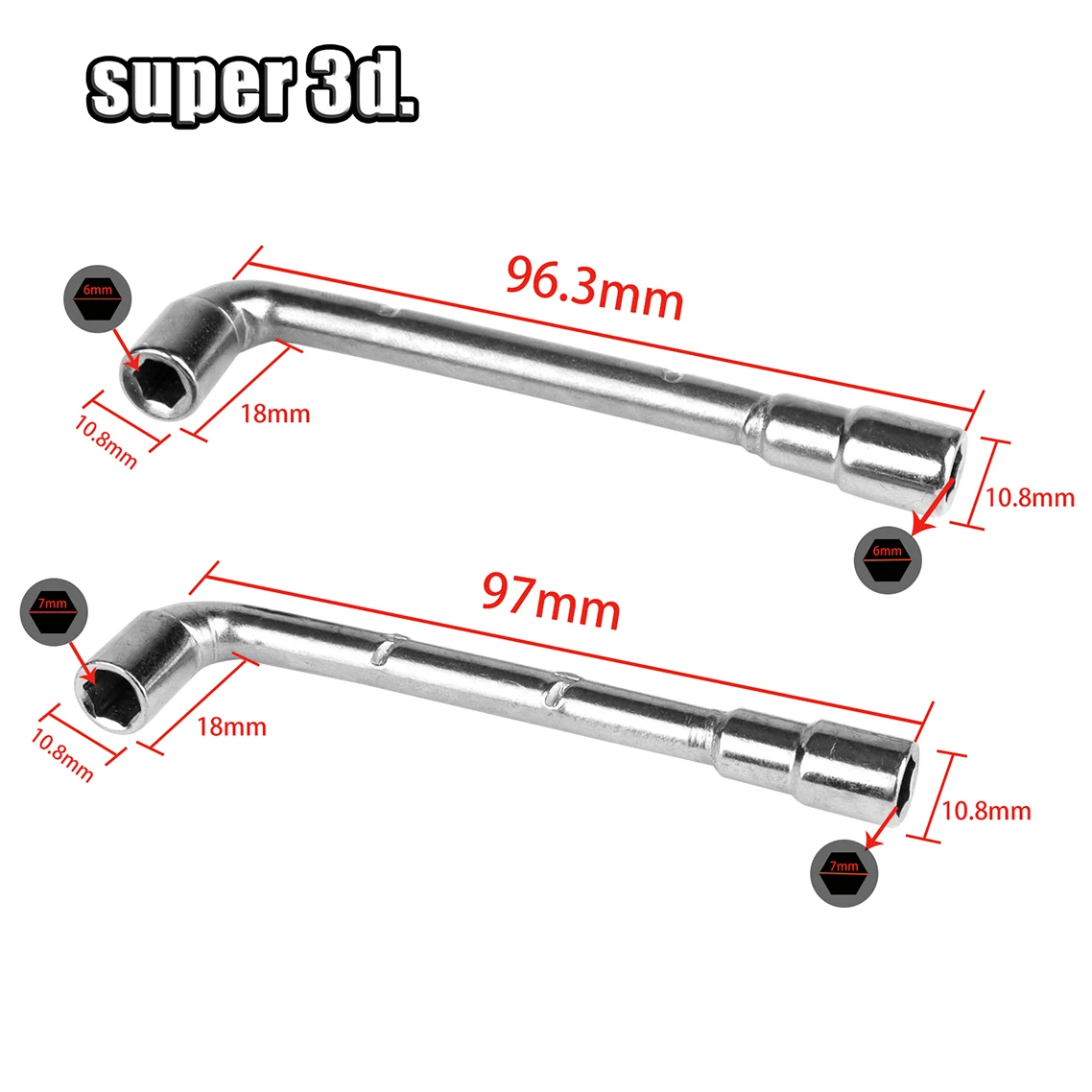 Chave de soquete de tubo em forma de l, 6mm 7mm, cotovelo perfurado, 7 formatos, hexagonal, cabeça dupla, ferramentas de reparo para impressora 3d, bico mk8/e3d