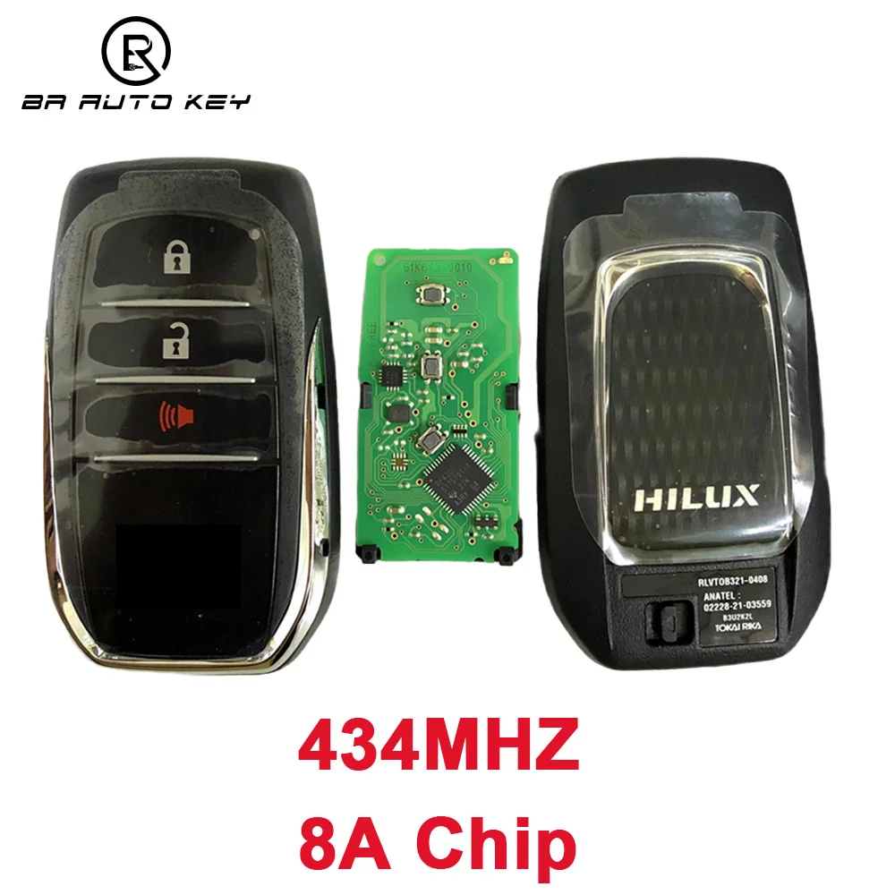 3/4 Botões Smart Key Keyless-go remoto 8A CHIP para ToyOriginal 3/4 Botão Inteligente Remoto Car Key Fob para Toyota Fortuner SW4 Hilux SRV 434Mhz 8A Chip BM1EW B3U2K2L 61k643-0010 0182ota