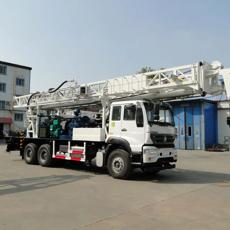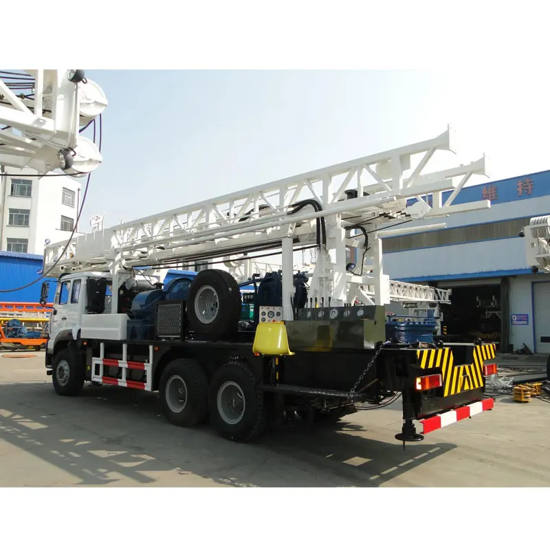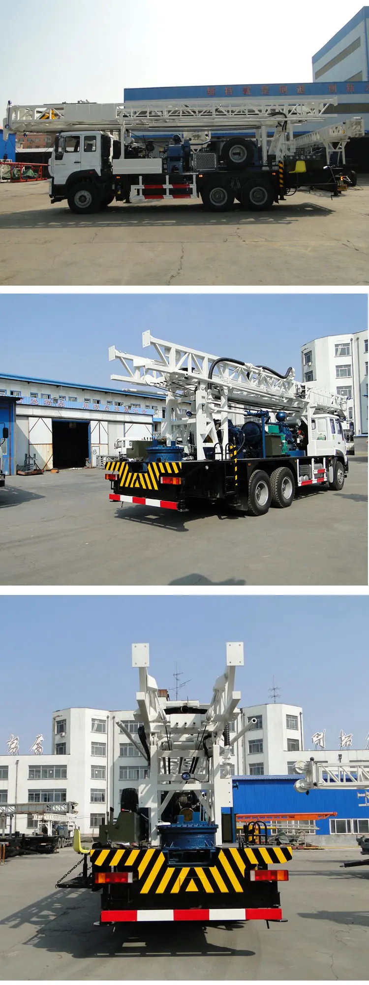 This water well rig is a light, efficient and versatile drilling and drilling equipment powered by a diesel engine. It is mainly used for drilling wells, agricultural irrigation wells and other wells, especially for mountainous and rock formations,water intake project. This series of rigs adopts new hydraulic technology, which is equipped with high-torque hydraulic motor rotation and large-bore hydraulic cylinder advancement. Use with air compressor, can drill 180M, 200M, 300M, 400M, 500M ,600M, 800M, etc.