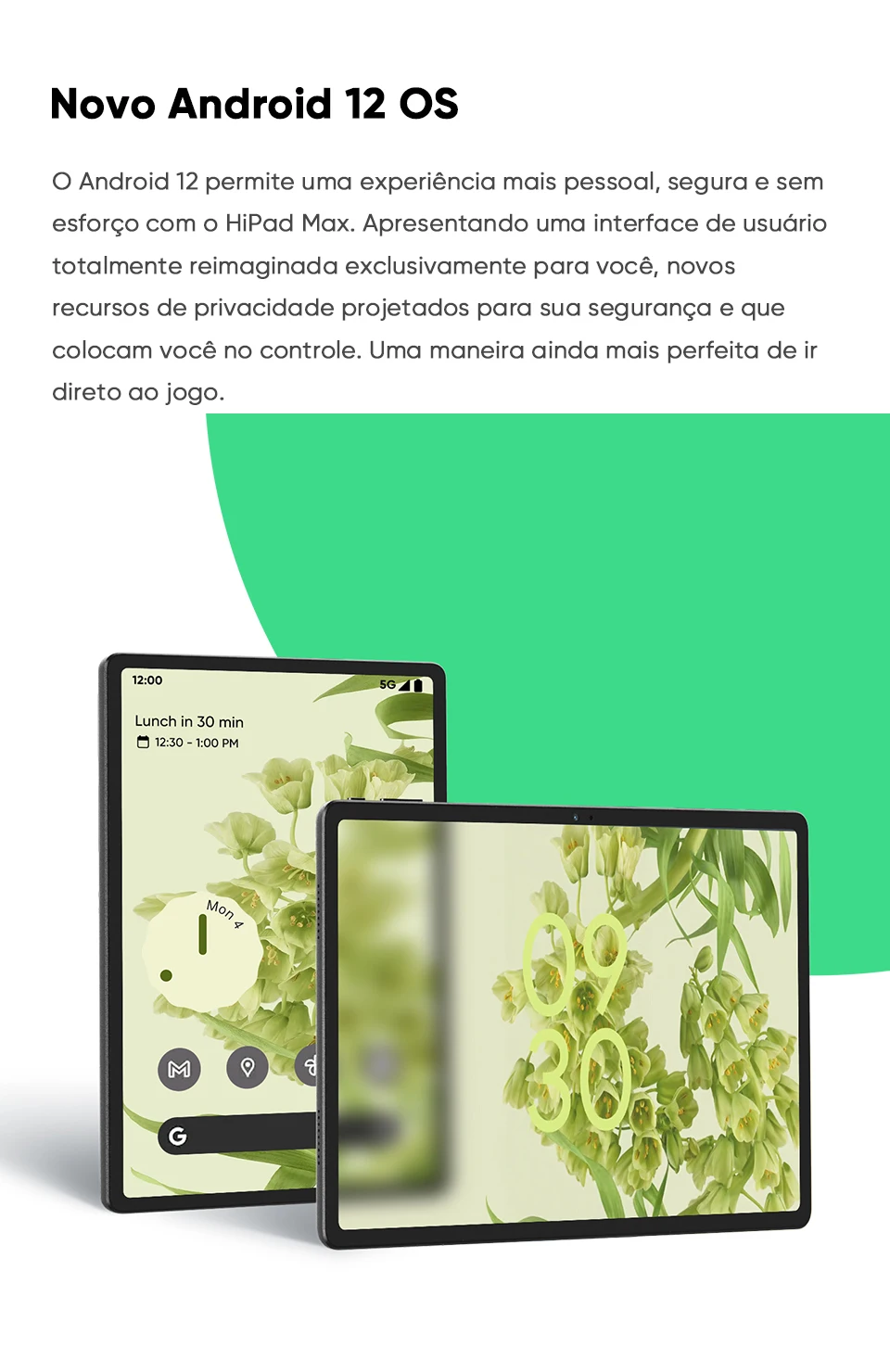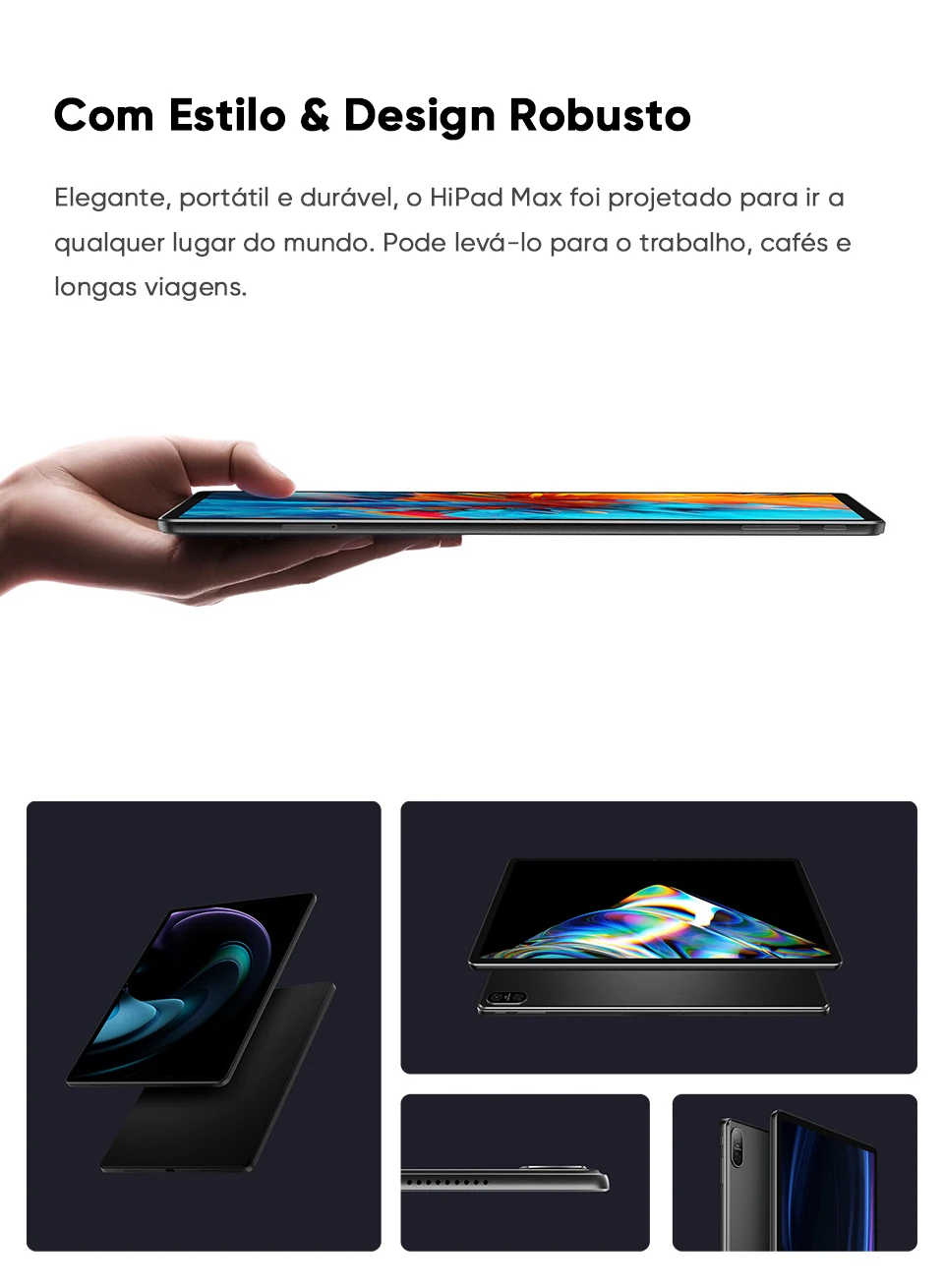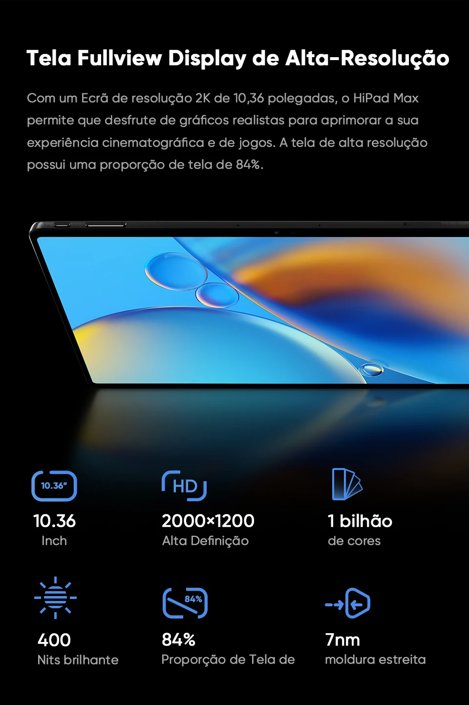 Novo qualcomm jogo tablet chuwi hipad max snapdragon 680 octa-core android 12 tablet   Display fullview de 10.36 polegadas: O tablet chuwi hipad max vem com uma tela de resolução de 10.36 polegadas 2k e uma relação de tela a tela de 84%.     Qualcomm snapdragon 680 processador: O processador snapdragon 680 octa-core fornece uma operação muito mais suave e garante uma experiência de jogo fluente.     Mais recente android 12 sistema operacional: O sistema operacional android 12 oferece uma experiência mais pessoal, segura e sem esforço. A certificação google widevine l1 suporta a transmissão de 1080p no netflix, no vídeo amazon prime e no hulu.     8gb lpddr4 + 128gb rom: O tablet do jogo tem 8gb ram e 128gb rom grande armazenamento combinado. A expansão do armazenamento do cartão do tf é de até 128gb.     Duplo 4g lte & banda dupla wifi: Este tablet pc TDD-LTE e FDD-LTE redes duplas 4g para chamadas telefônicas. Enquanto o wifi de banda dupla fornece uma experiência de rede rápida e rápida.
