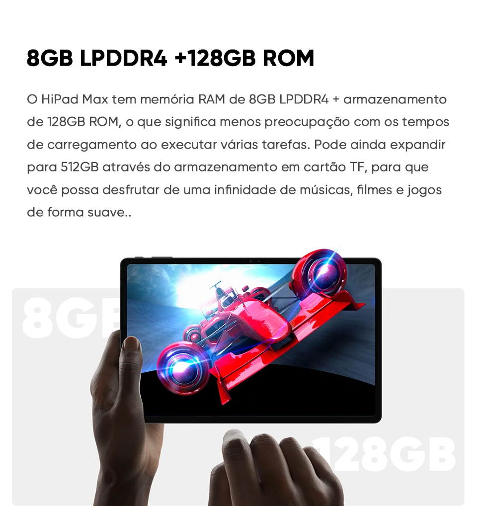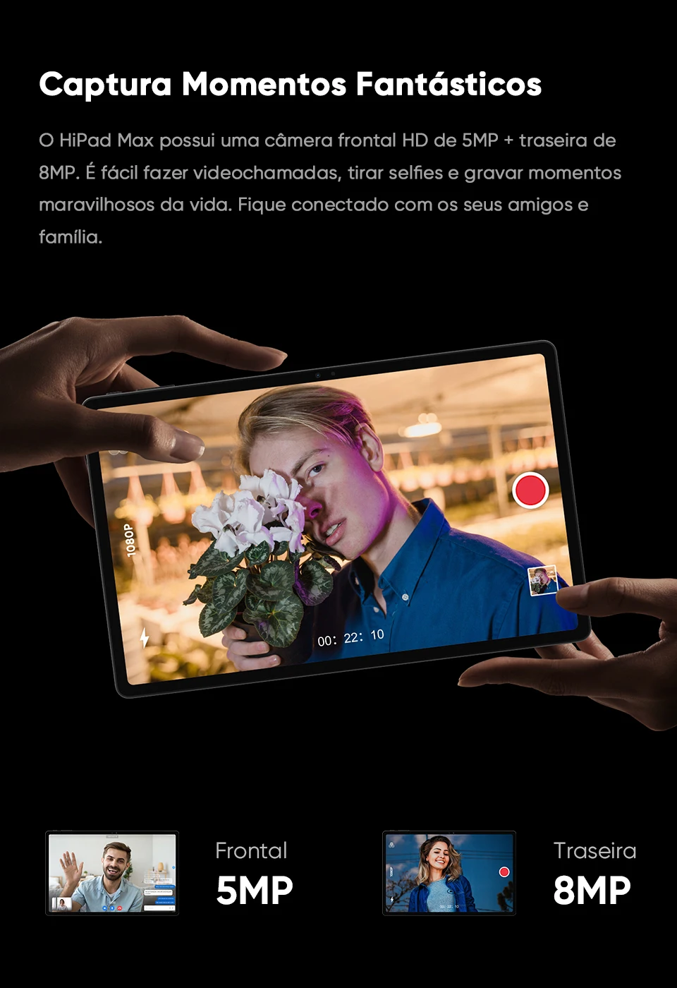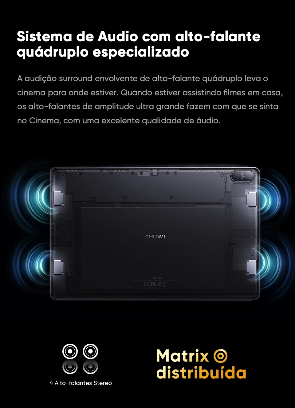 Novo qualcomm jogo tablet chuwi hipad max snapdragon 680 octa-core android 12 tablet   Display fullview de 10.36 polegadas: O tablet chuwi hipad max vem com uma tela de resolução de 10.36 polegadas 2k e uma relação de tela a tela de 84%.     Qualcomm snapdragon 680 processador: O processador snapdragon 680 octa-core fornece uma operação muito mais suave e garante uma experiência de jogo fluente.     Mais recente android 12 sistema operacional: O sistema operacional android 12 oferece uma experiência mais pessoal, segura e sem esforço. A certificação google widevine l1 suporta a transmissão de 1080p no netflix, no vídeo amazon prime e no hulu.     8gb lpddr4 + 128gb rom: O tablet do jogo tem 8gb ram e 128gb rom grande armazenamento combinado. A expansão do armazenamento do cartão do tf é de até 128gb.     Duplo 4g lte & banda dupla wifi: Este tablet pc TDD-LTE e FDD-LTE redes duplas 4g para chamadas telefônicas. Enquanto o wifi de banda dupla fornece uma experiência de rede rápida e rápida.