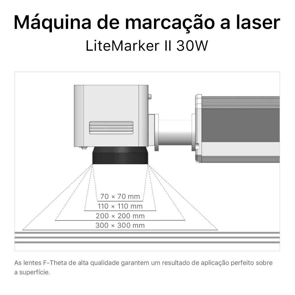 ●A mesma potência, quanto menor a lente F-Theta, mais profunda será a gravação,
