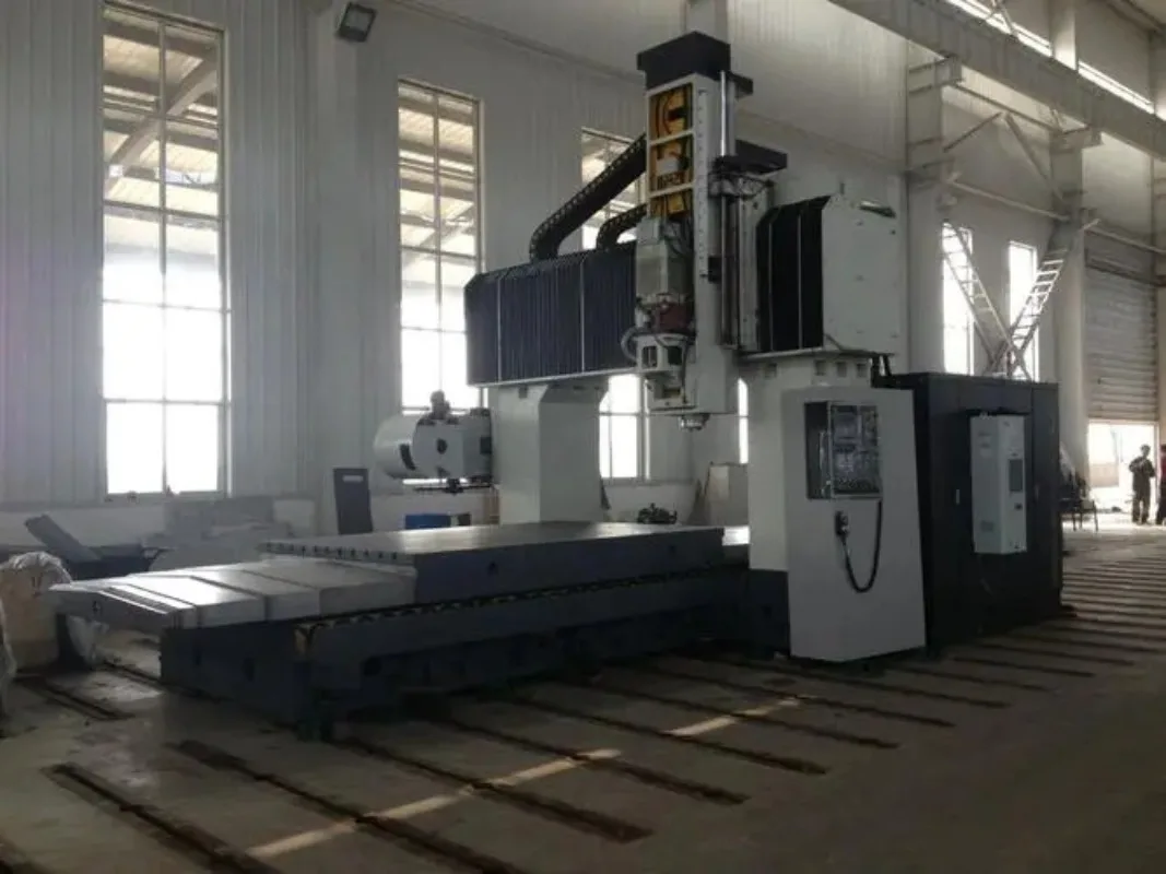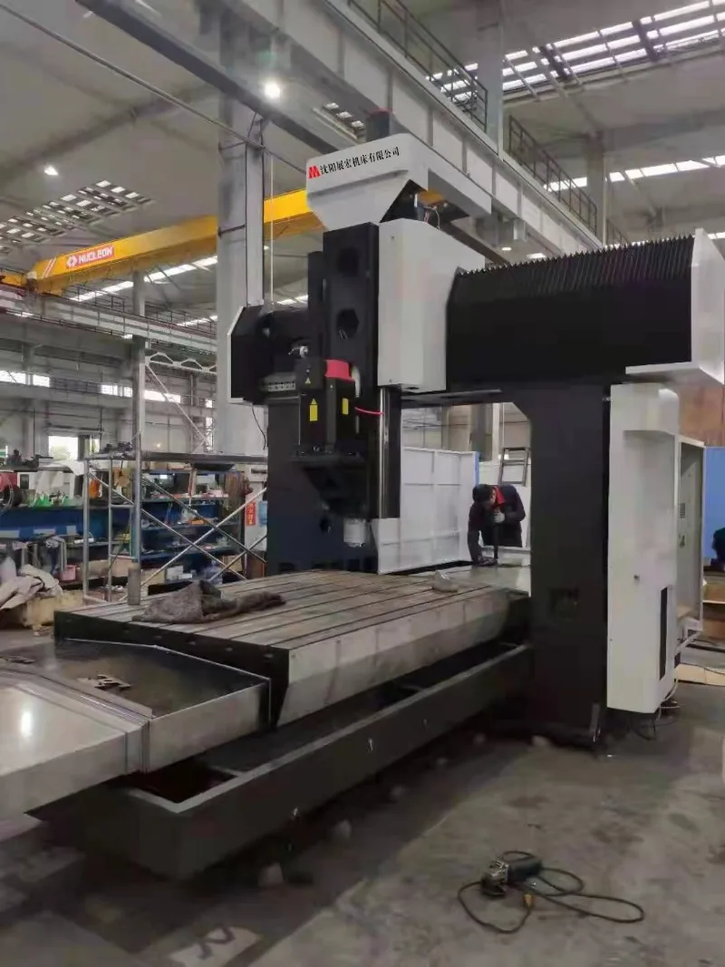 采用工作台移动,固定横梁,龙门框架结构,双立柱坐在床身两侧上的布局形式.