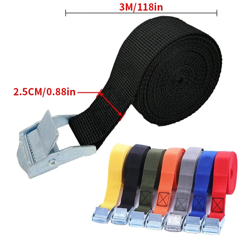 Corda de tensão para carro 3m 6m, cinta de amarração forte, cinto de catraca para bolsa de bagagem, fivela de metal, tiras de carga para motocicleta, bicicleta, 1 peça