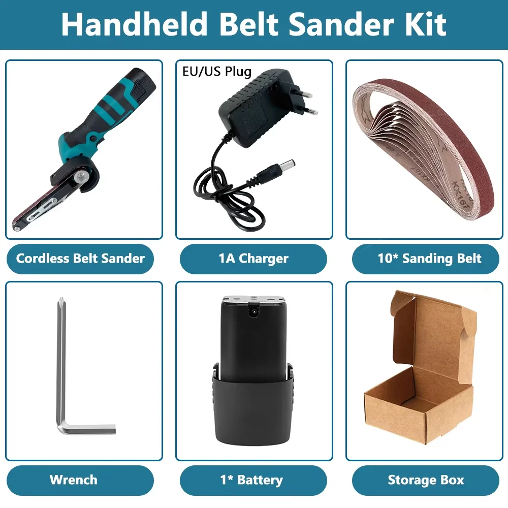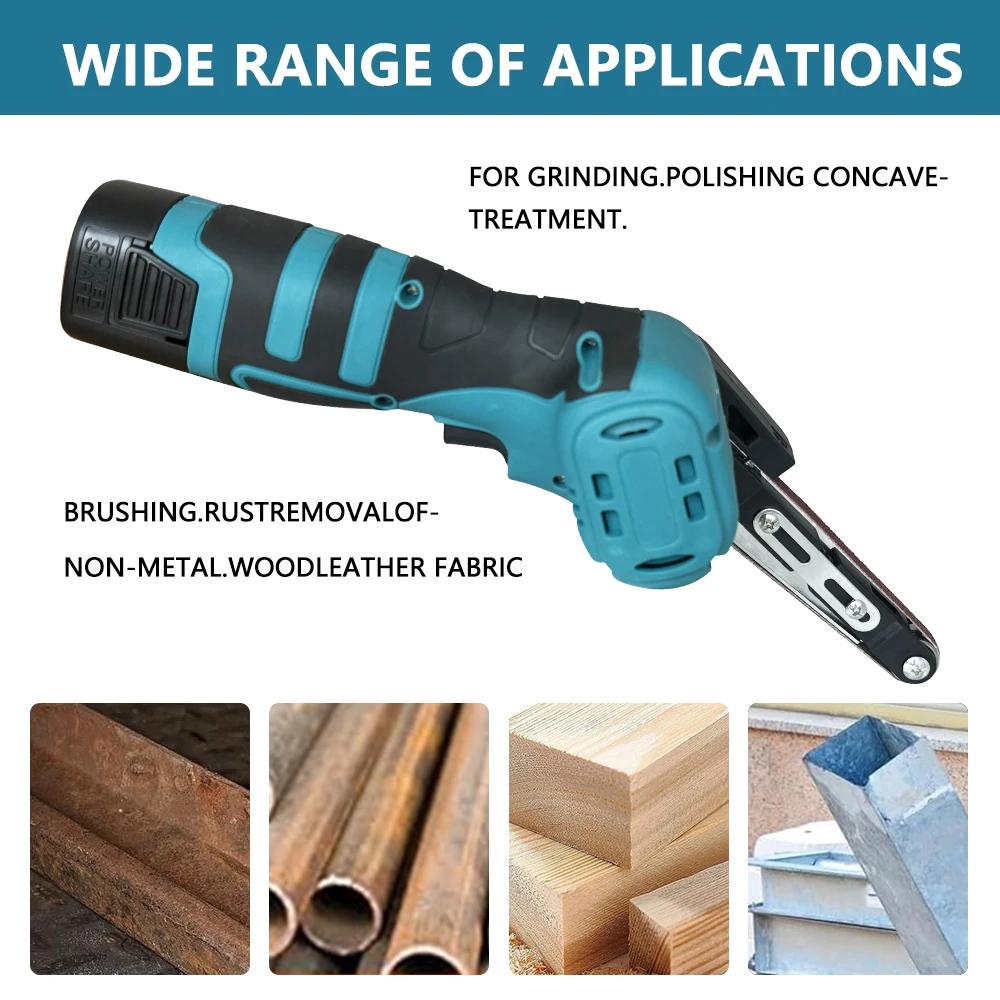 [Versatile Usage] This handheld belt sander is perfectly for various tasks, including drilling metal parts, shaping wood, smoothing curves, and sharpening blades, making it an essential tool for diy enthusiasts and professionals alike.