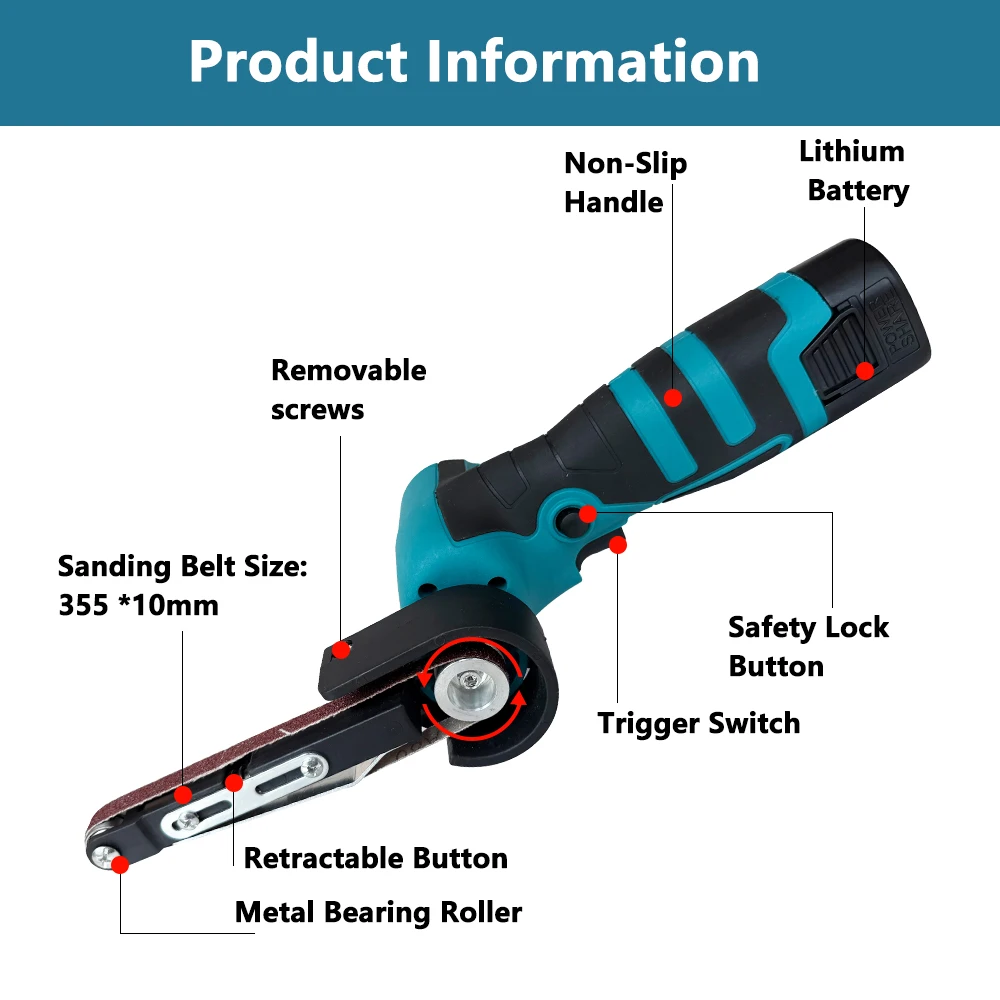 [Secure Sanding] Designed with multiple safety features, the sanding belt remains securely in place during use, preventing slippage or displacement for consistent and reliables sanding results.