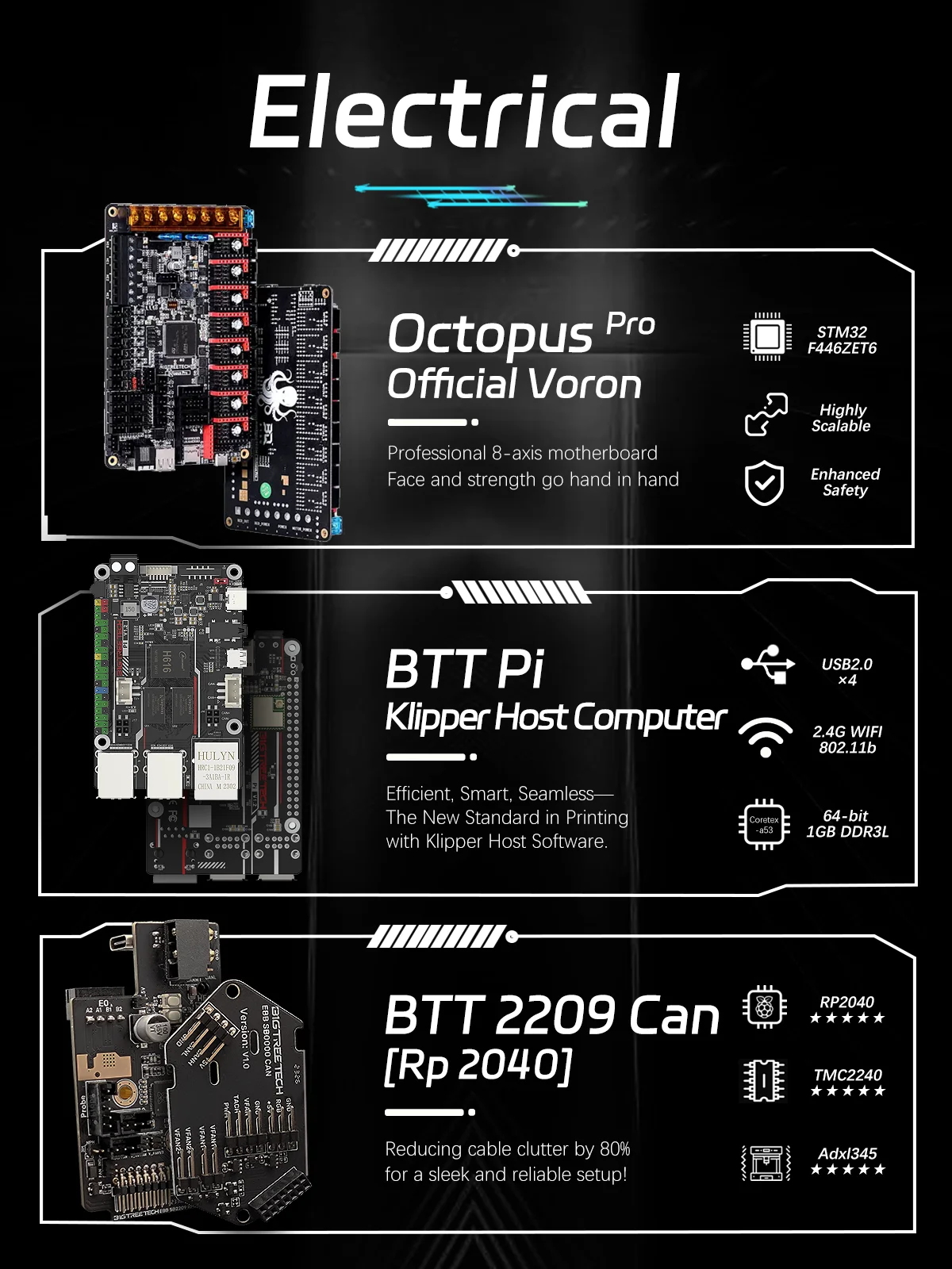 2: Solução de Fiação Integrada: Microcontrolador RP2040 integrado e BTT 2209 CAN Tool Board, reduzindo a desordem do cabo em 80% para uma configuração elegante e confiável!
