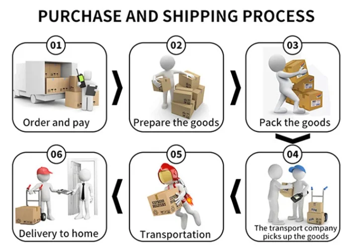 Nosso processo de entrega do produto é conforme mostrado abaixo.A partir do momento em que você faz um pedido, nós o entregaremos o mais rápido possível.
