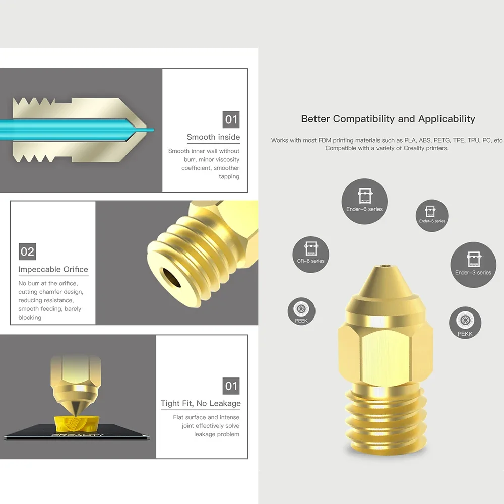 Works with most FDM printing materials such as PLA, ABS, PETG,TPU,PC,etc, and high temperature filaments such as PEEK,PEKK,PEI,PSU.