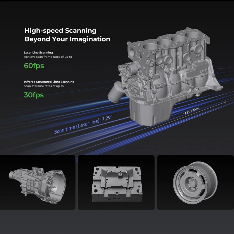 Creality 3D Scanner Raptor X CR-Scan Impressão 3D 3 em 1 portátil sem fio Hybird Blue Laser NIR Scanner 60fps Velocidade de digitalização