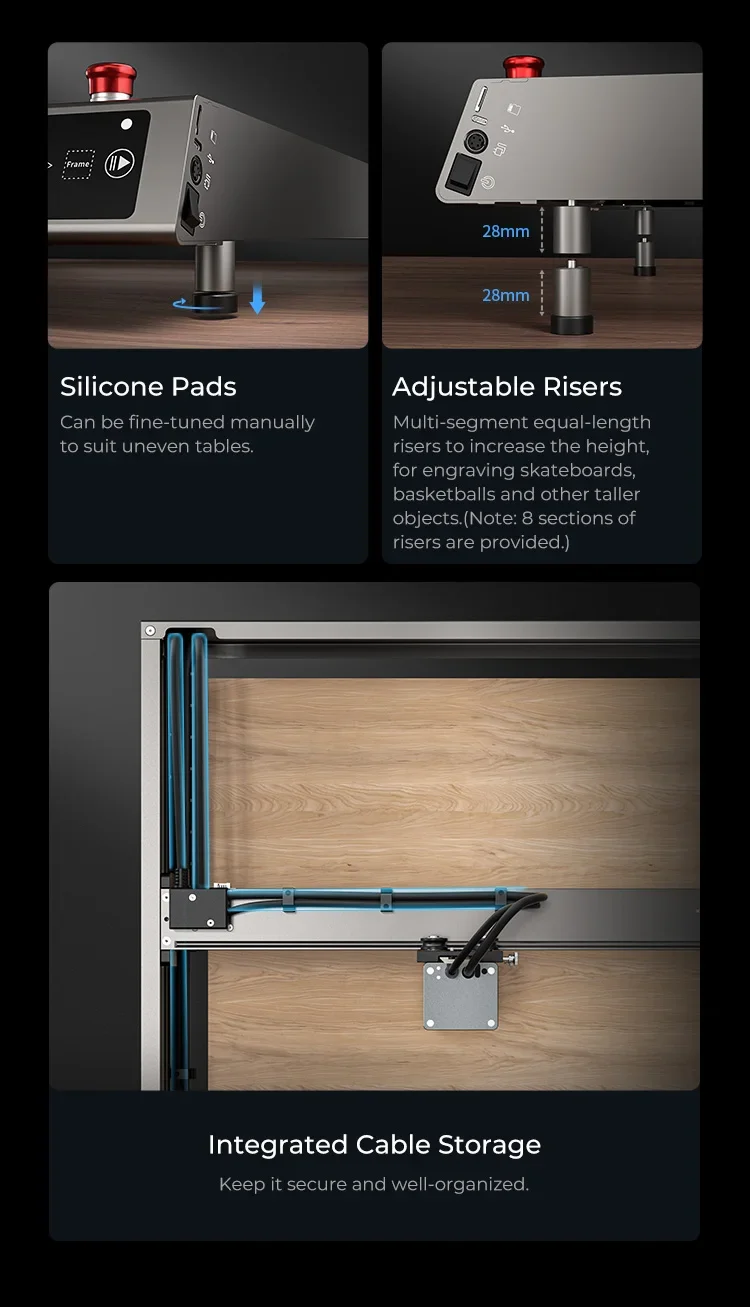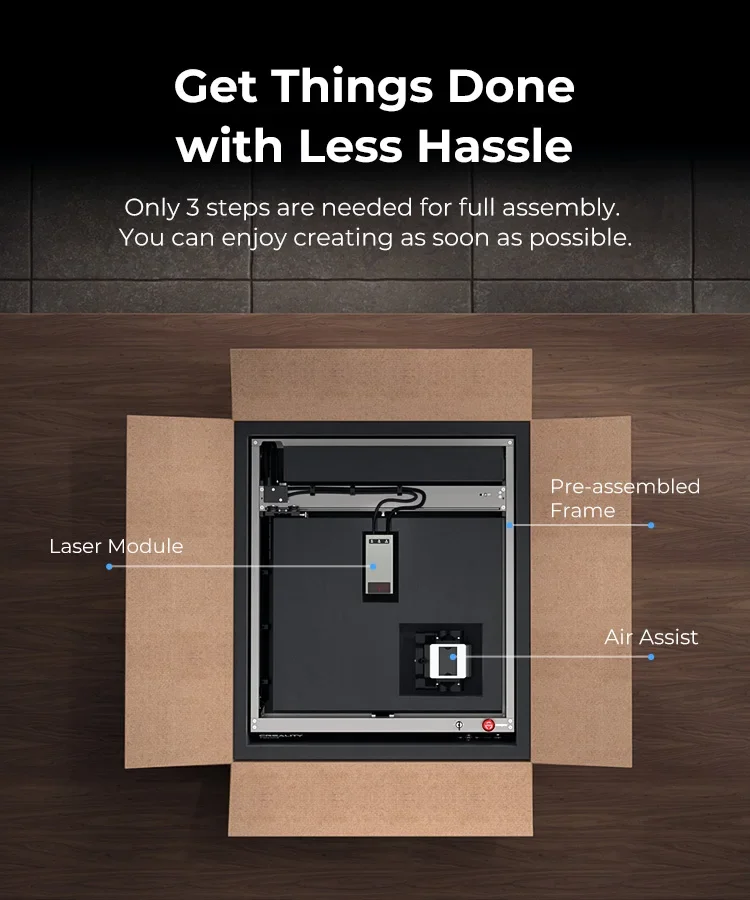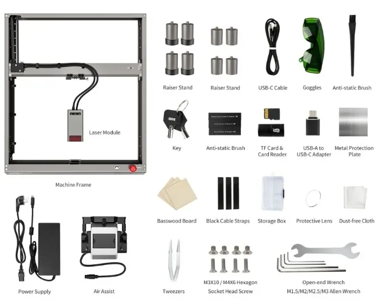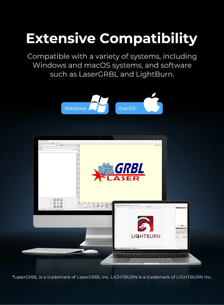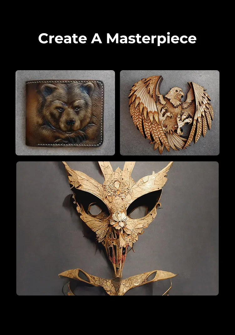 Materiais suportados: papelão, madeira, bambu, borracha, couro, tecido, acrílico, plástico, metal