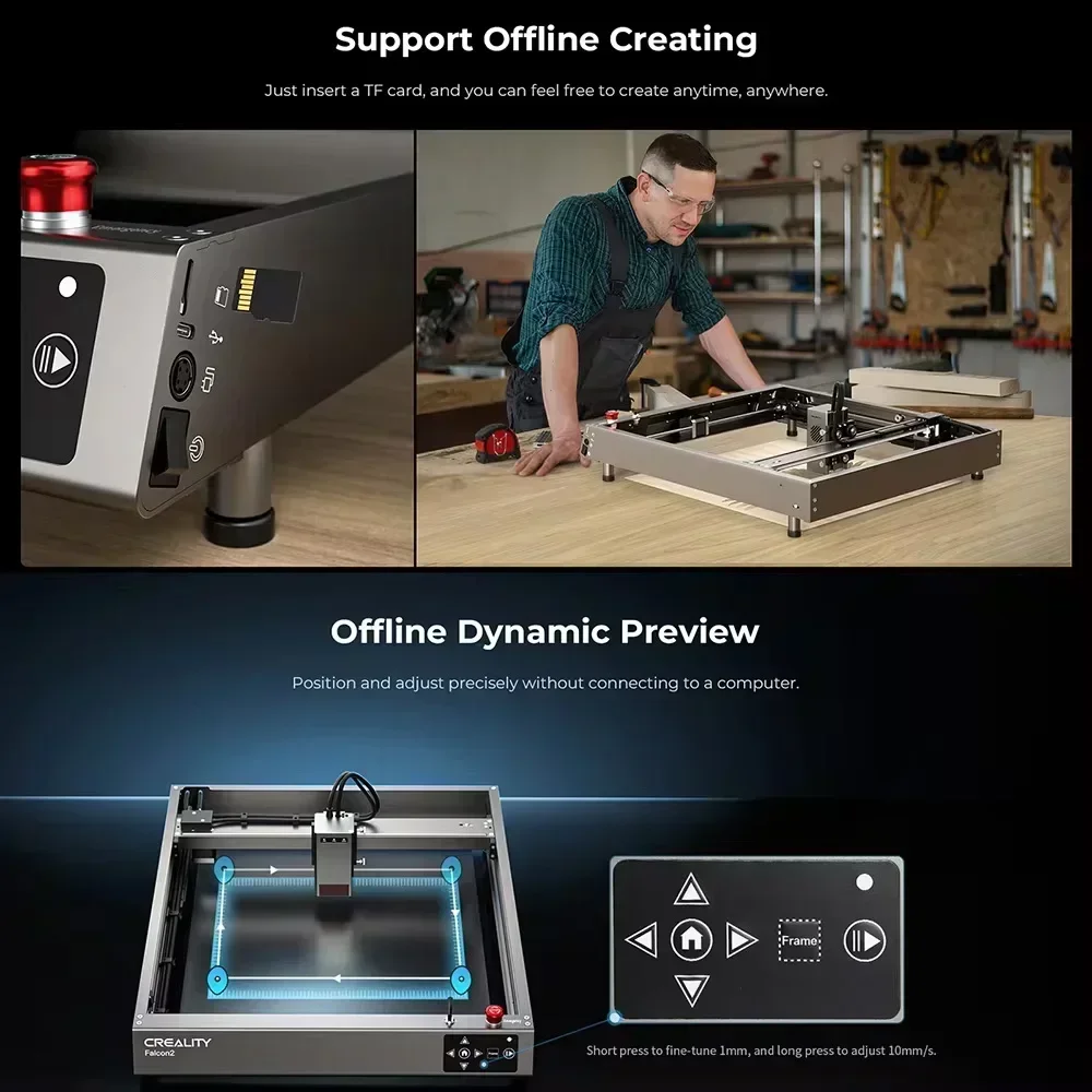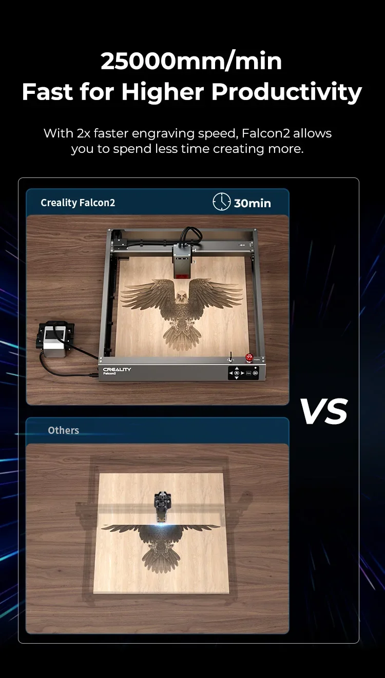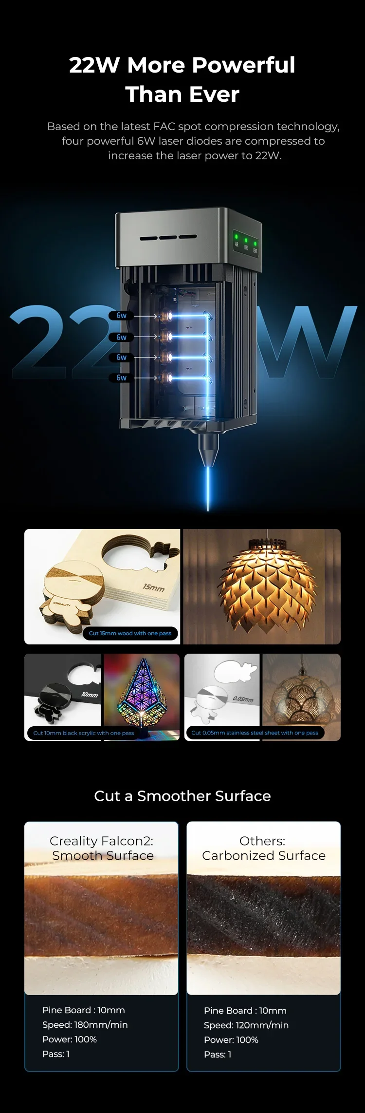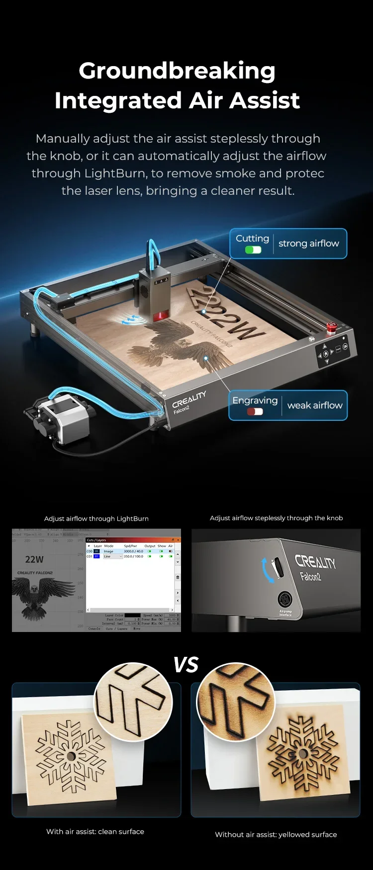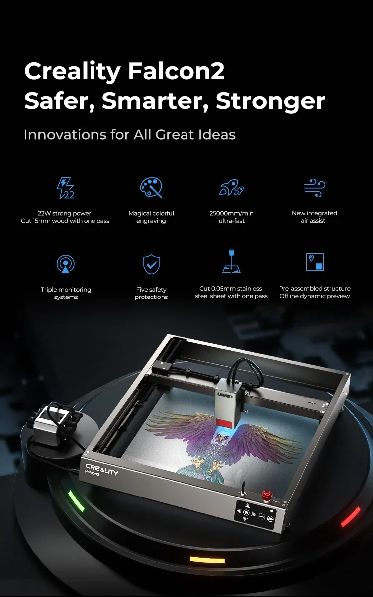 Creality falcon 2 gravador a laser 22w saída cnc diy máquina de gravação a laser 25000mm/min velocidade integrada air assist cortador a laser