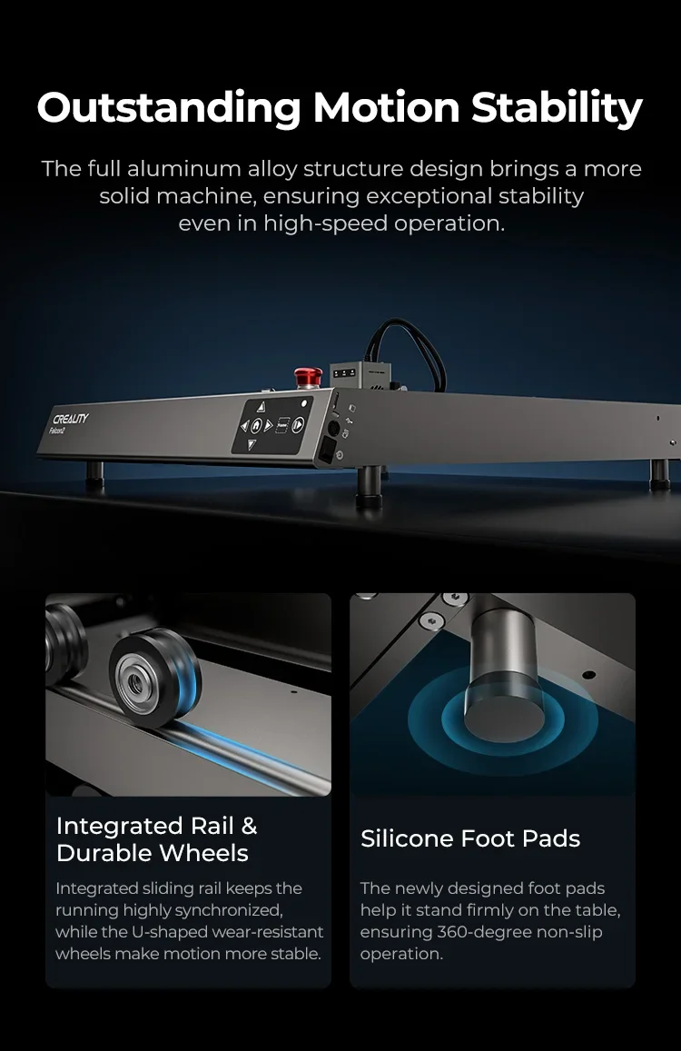 O design da estrutura totalmente em liga de alumínio traz uma máquina mais sólida, garantindo estabilidade excepcional mesmo em operação em alta velocidade.