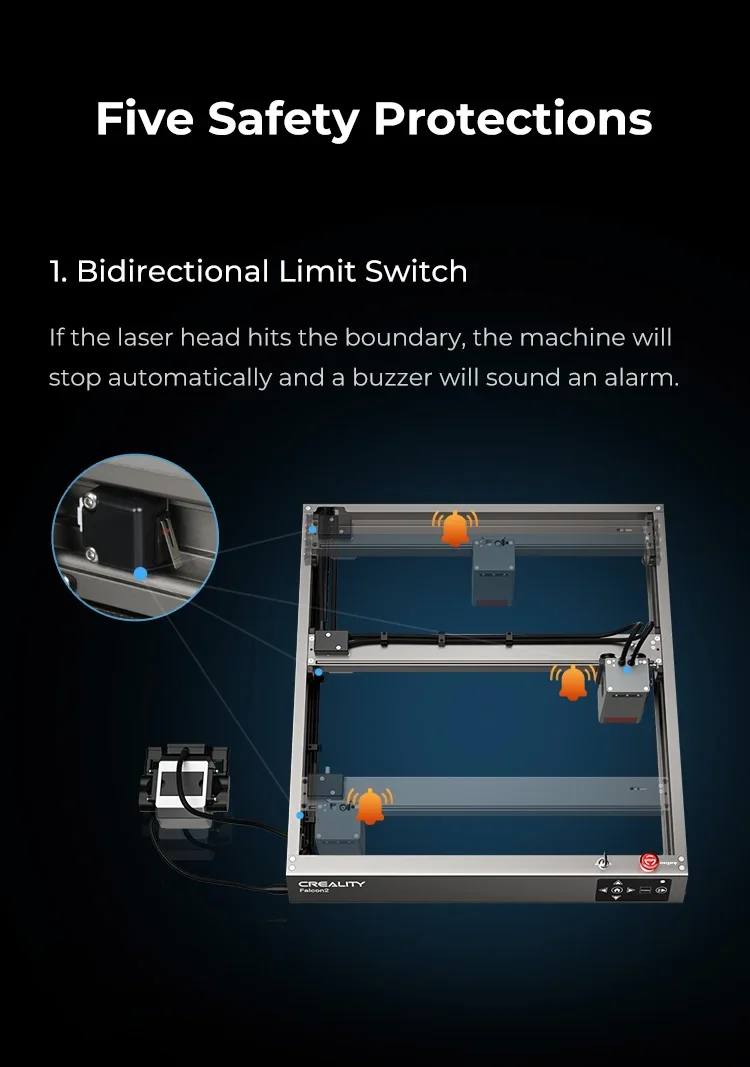 Se a cabeça do laser atingir o limite, a máquina irá parar automaticamente e uma campainha irá