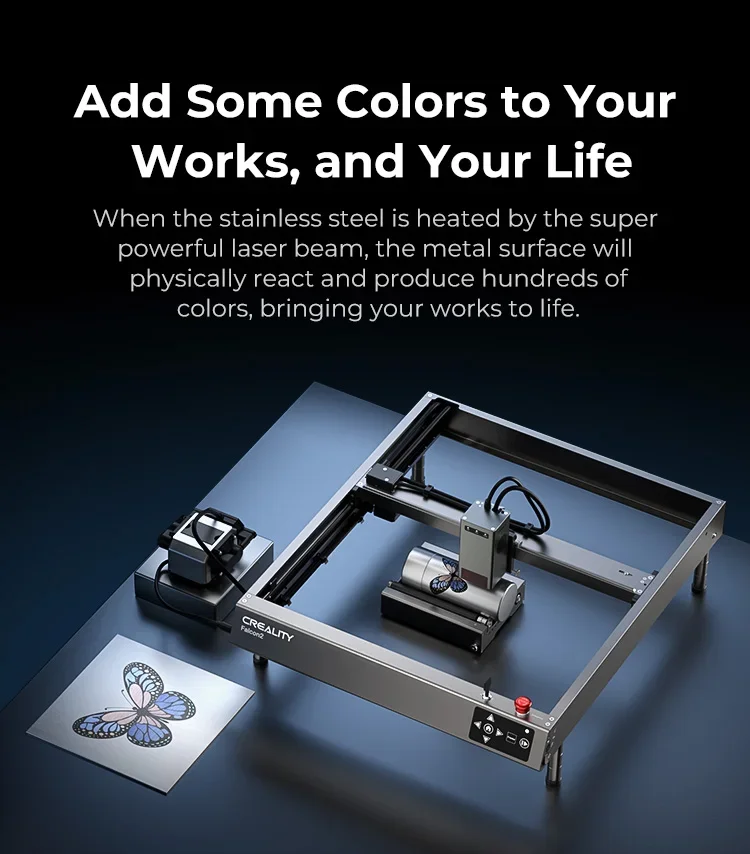 Quando o aço inoxidável é aquecido pelo feixe de laser superpotente, a superfície do metal reagirá fisicamente e produzirá centenas de cores, dando vida aos seus trabalhos.