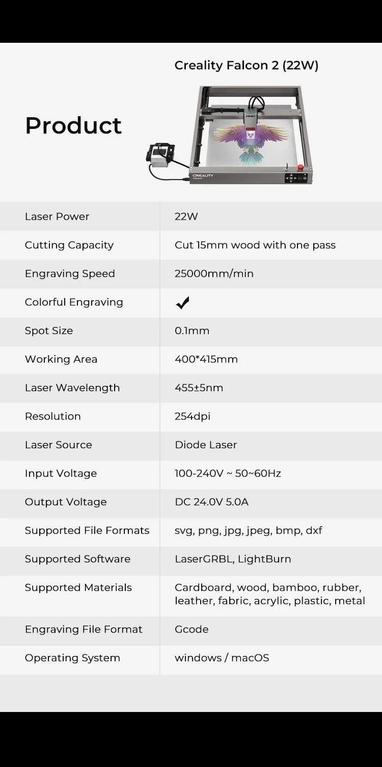 Seja o primeiro a avaliar “Creality falcon 2 gravador a laser 22w saída cnc diy máquina de gravação a laser 25000mm/min velocidade integrada air assist cortador a laser”