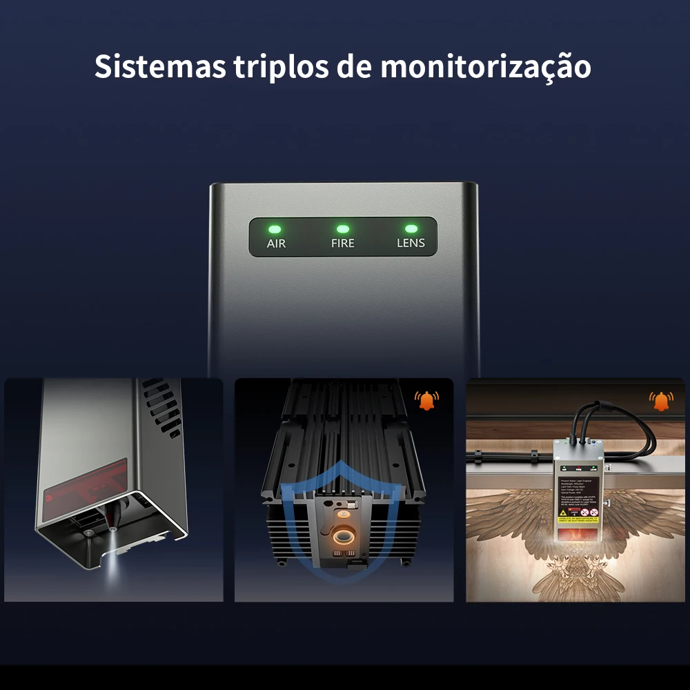 O sistema de monitoramento de lentes incorporado acionará um alarme quando a lente estiver suja o suficiente, o que ajuda a evitar a quebra da lente e a substituição frequente.