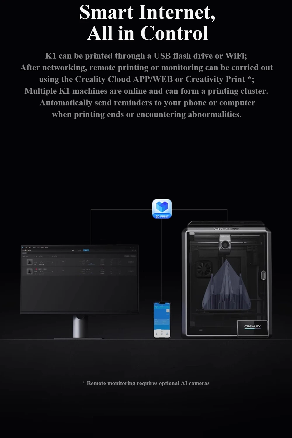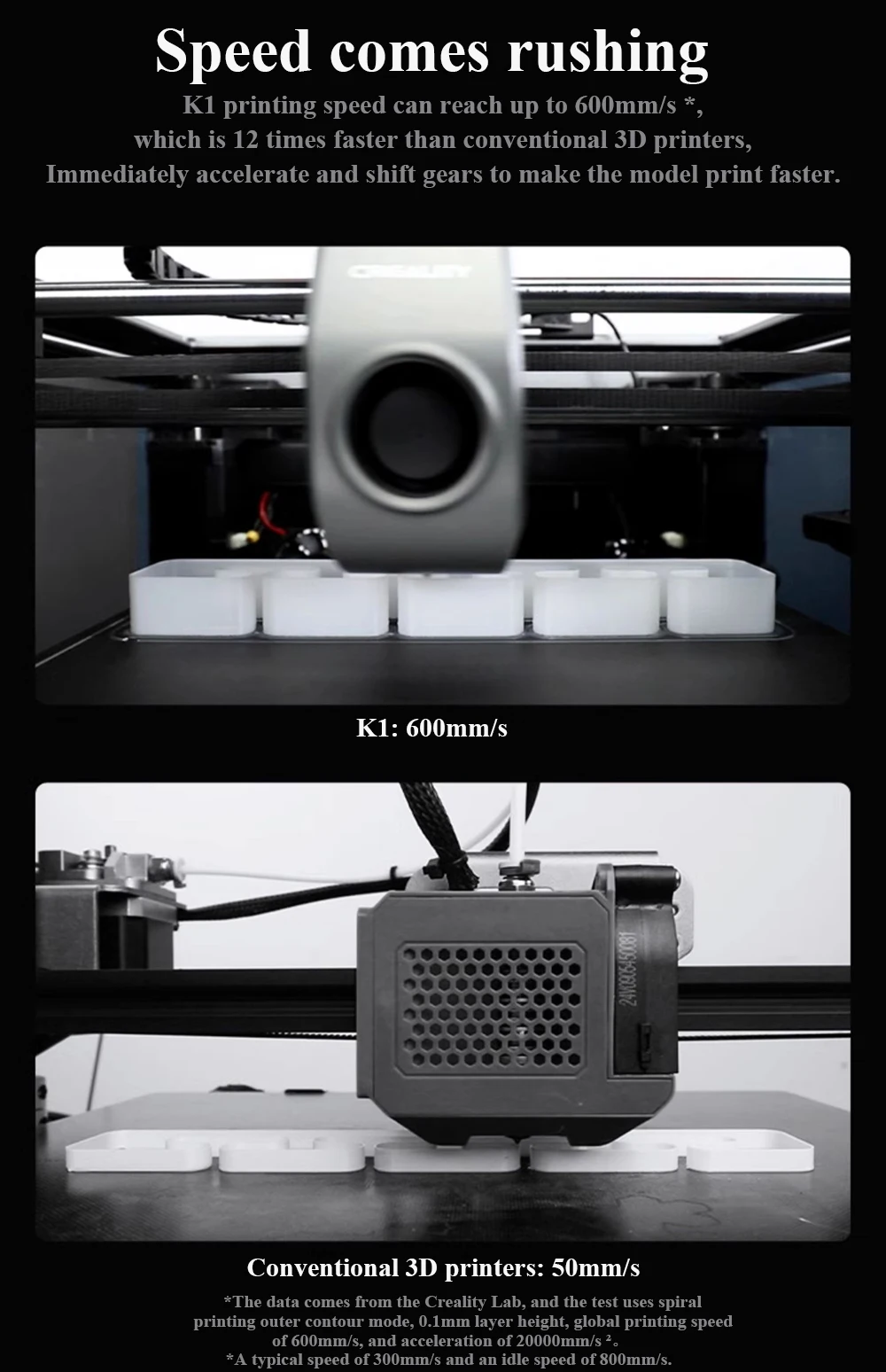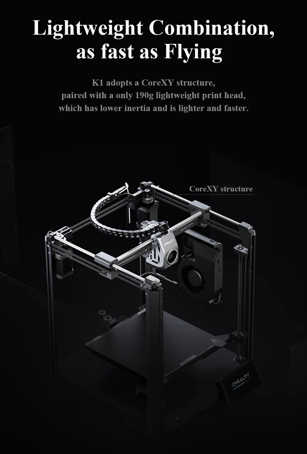 CRIALIDADE K1 Impressora 3D 600 mm/S Velocidade Impressão Quadro Estável Fechado Câmara Dupla Ventilador Direct Drive Extrusora Impressora 3D.